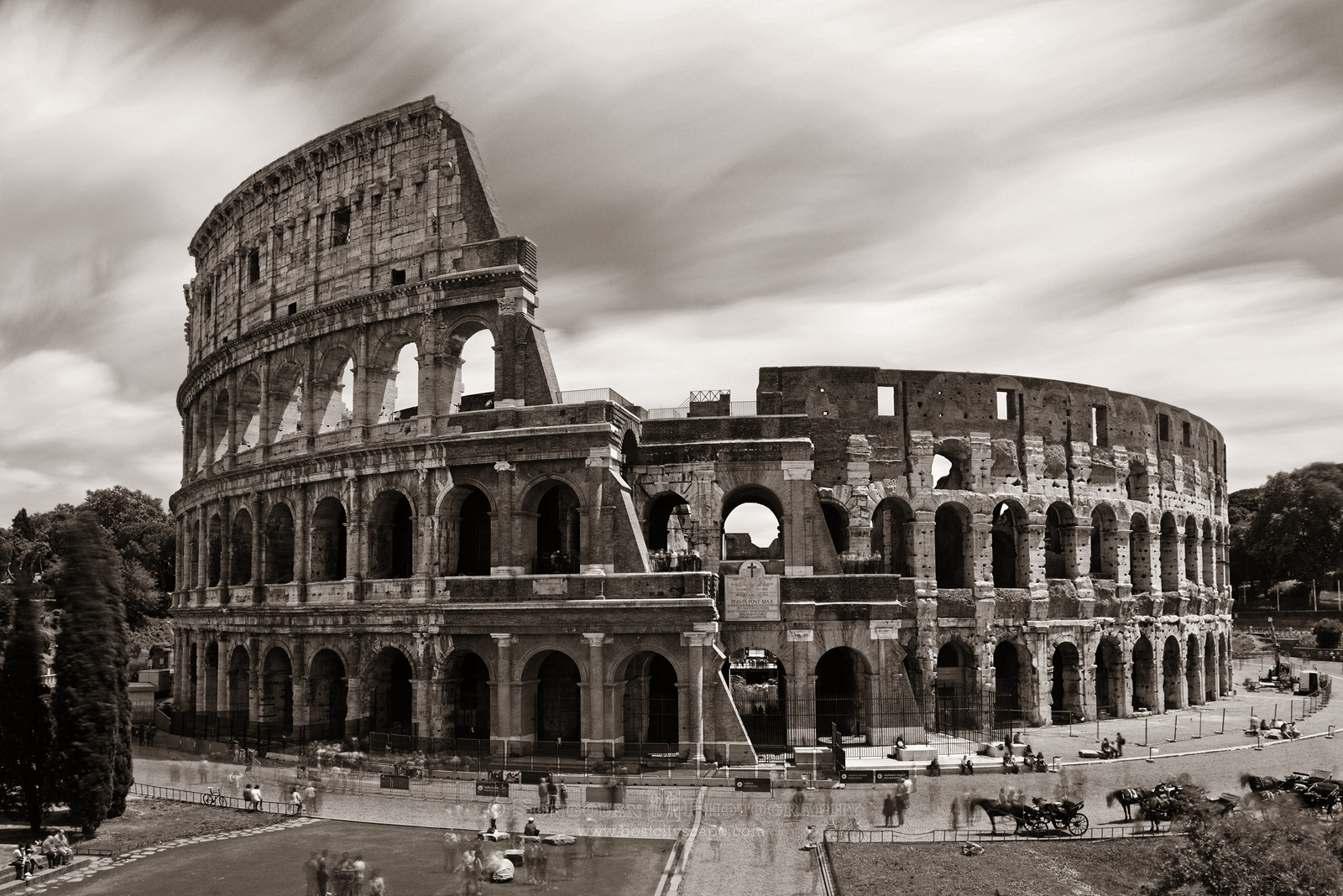 罗马人学了过去,把两个半圆拼凑成一个整圆,并建于平地上。例如著名的斗兽场。