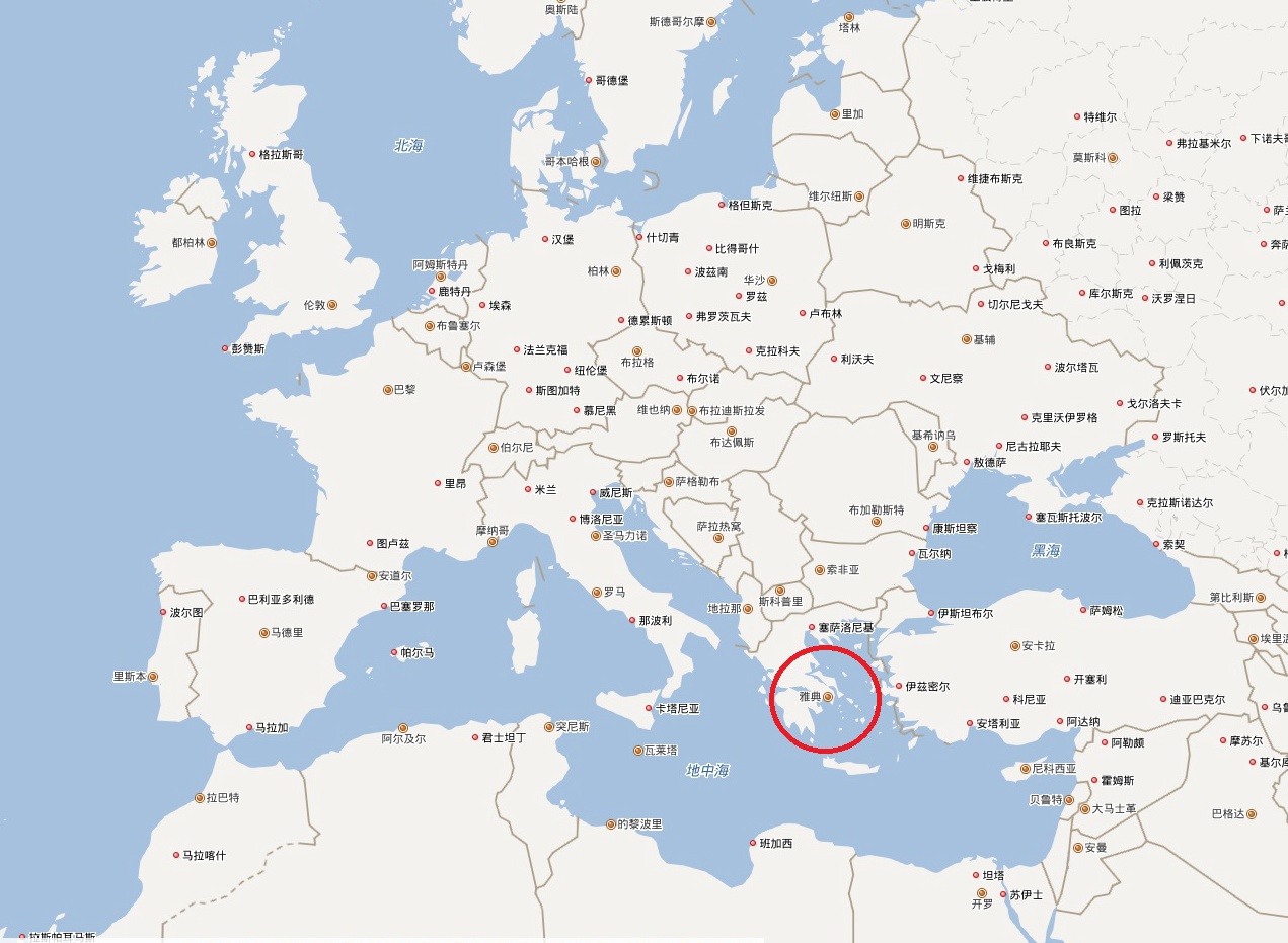 照例,看看雅典的位置。来源:百度地图