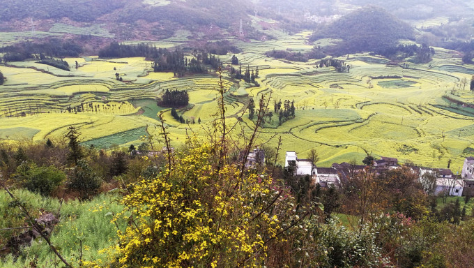 还有九龙瀑布附近的油菜花田也很好看,花田与瀑布、群山相应成趣。