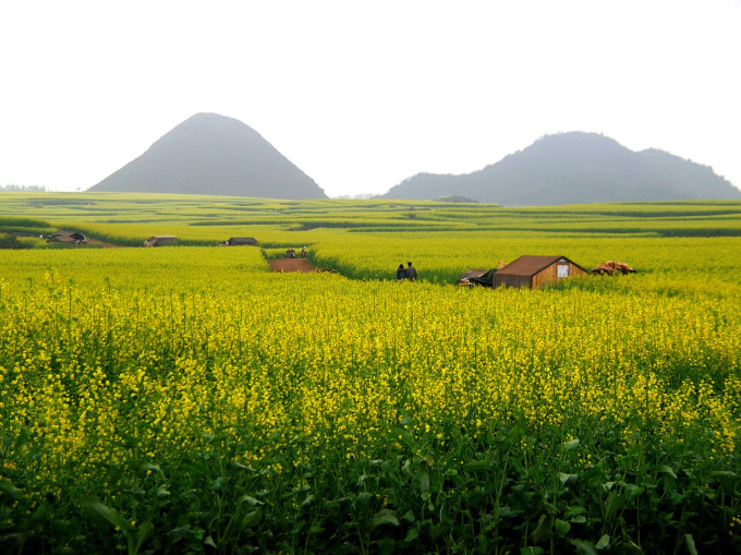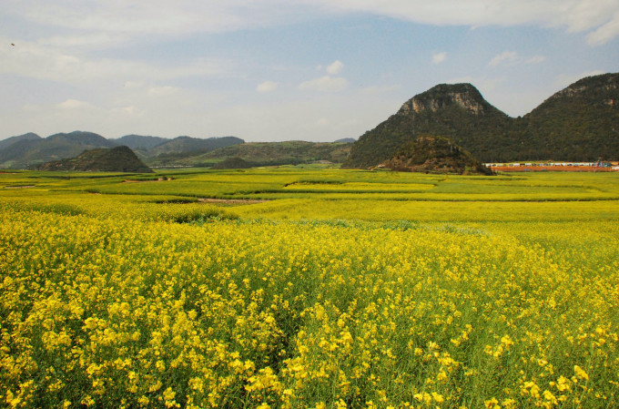 这里号称有八十万亩油菜花,春节过后就开花,一直持续到四月上旬。罗平三月上旬开始“油菜花节”,这是罗平一年中最热闹的时候。