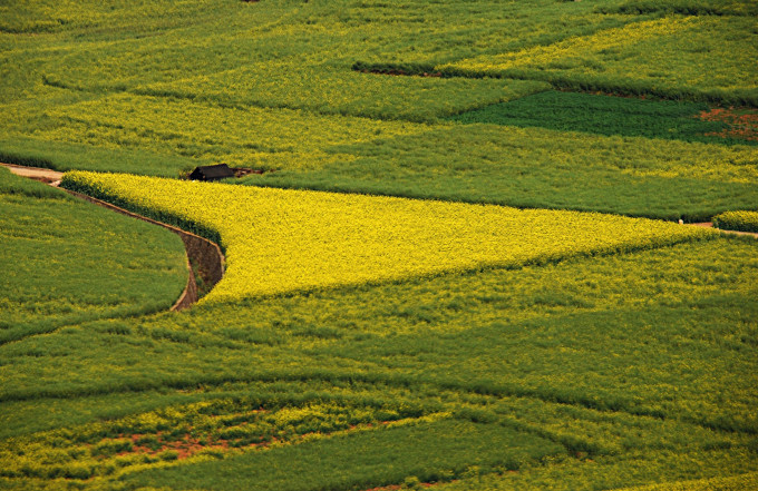 除了种油菜花,这里也种了其他作物,不同颜色形状的色块交织,很有观赏性。