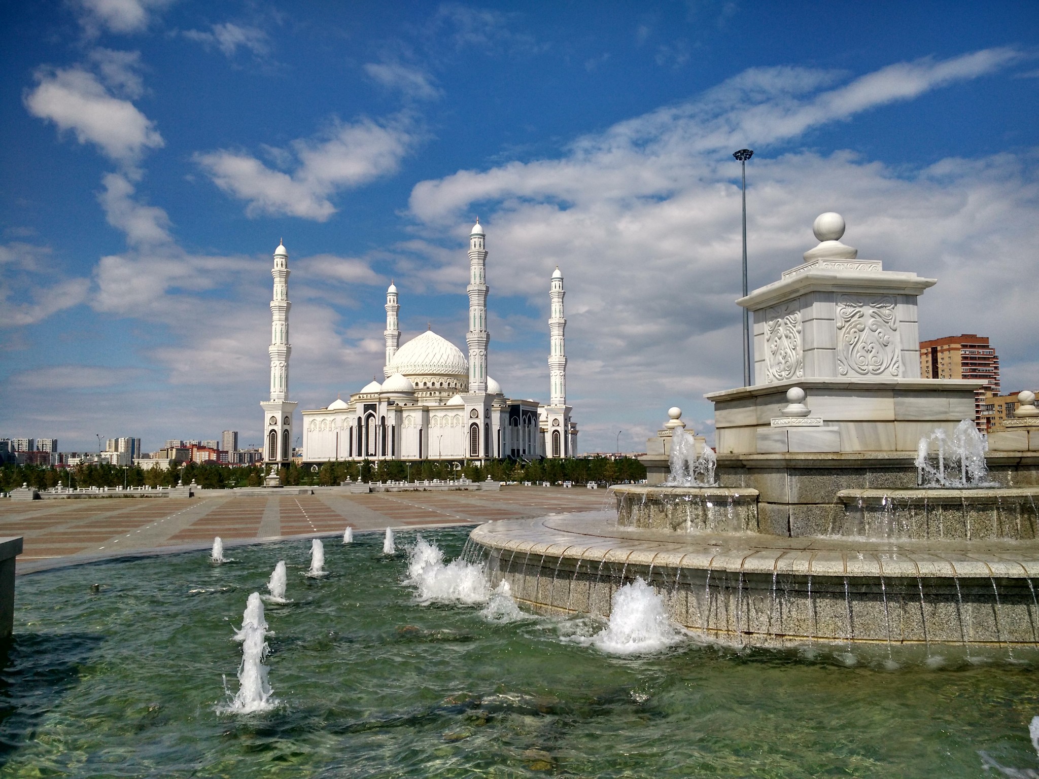 6/11 工作方始找到时间出去玩了。第一站:Nur Astana清真寺。城南主要的一座清真寺,没有Hazret Sultan的霸气,但也显得典雅可爱,内部的色调是很可爱的宝蓝色(不放图)。