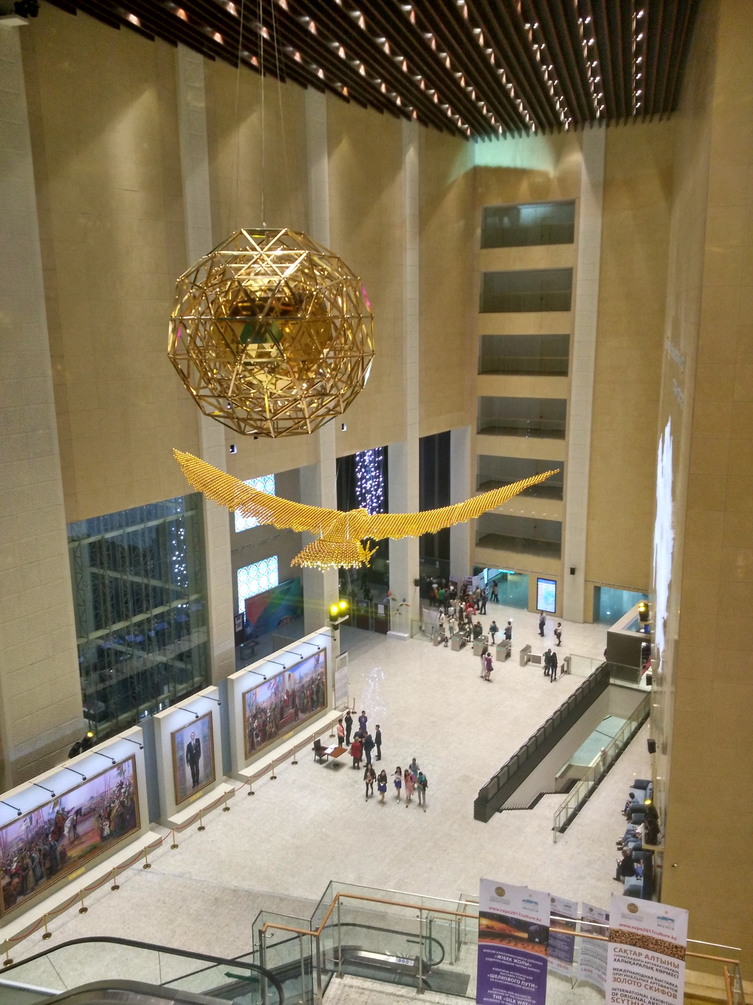 中庭的金色之鹰,哈萨克的象征之一。有幸在某一时刻观看了它伴随着音乐在空中“飞翔”的表演。