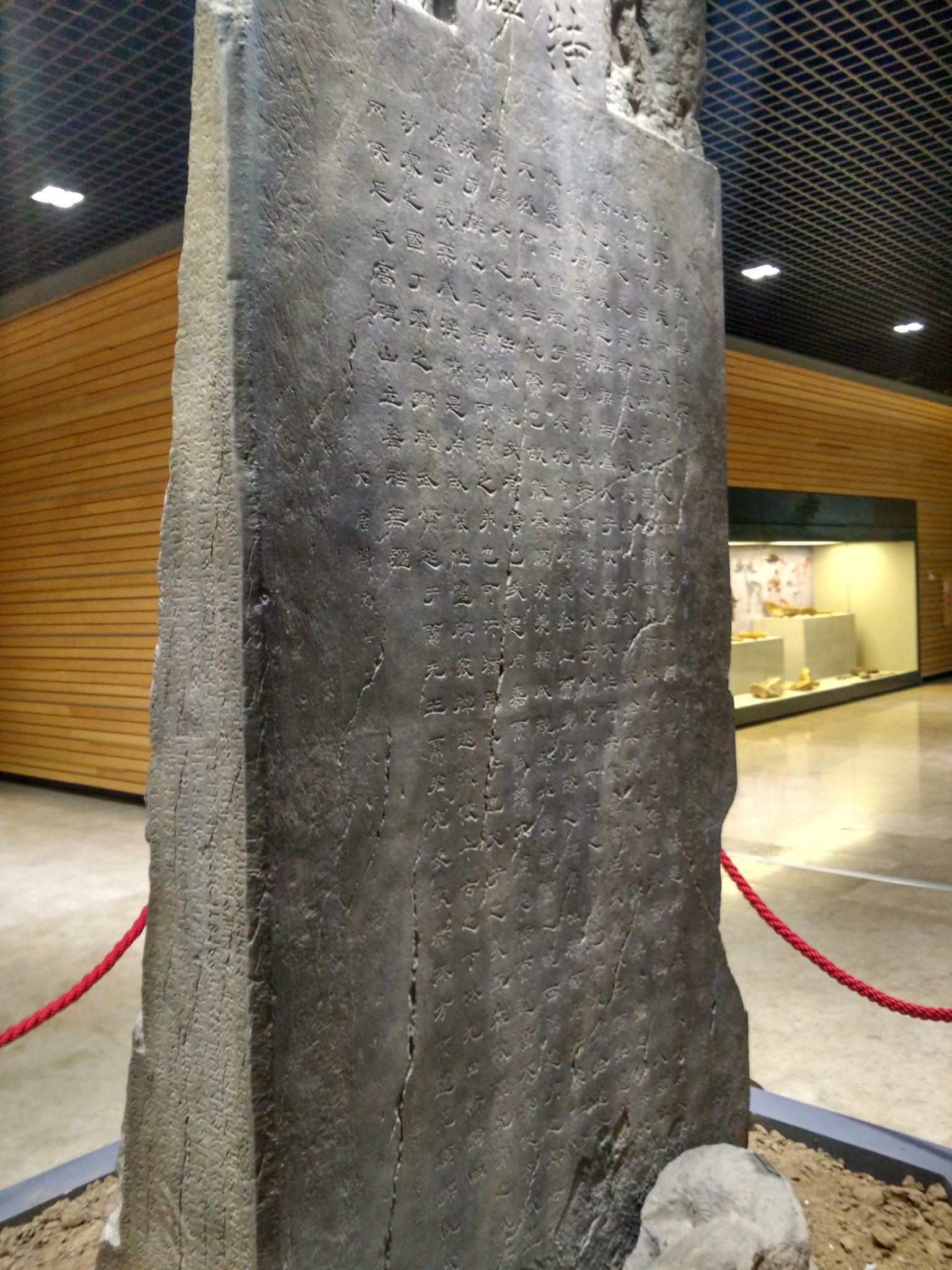 唐朝?的碑文;一面是汉字,一面是不知名的文字。