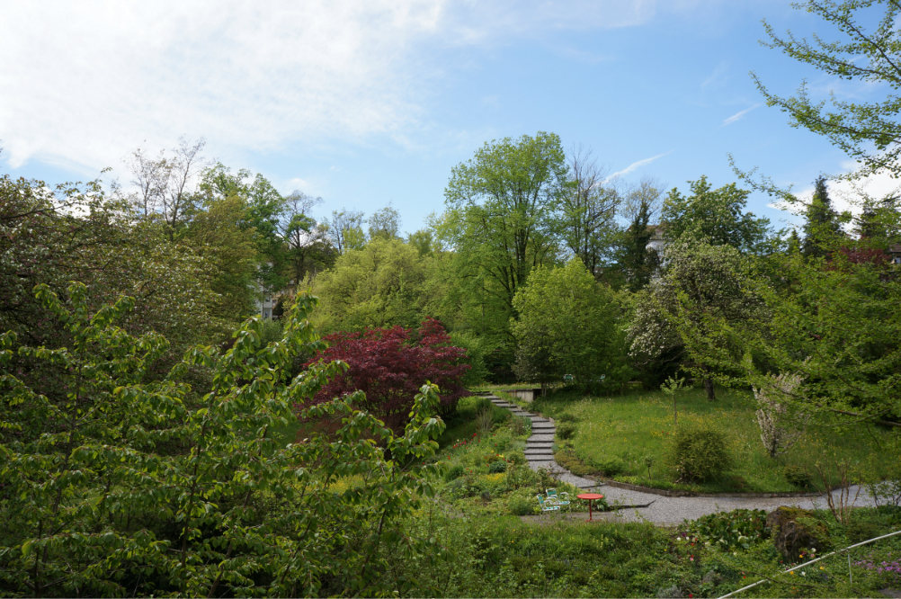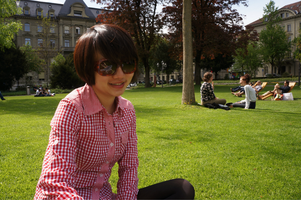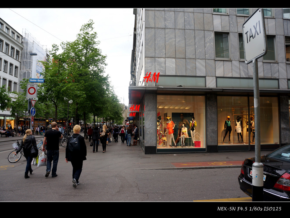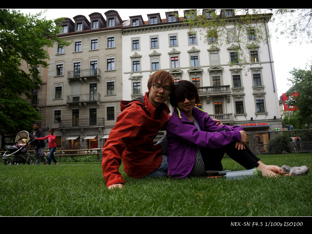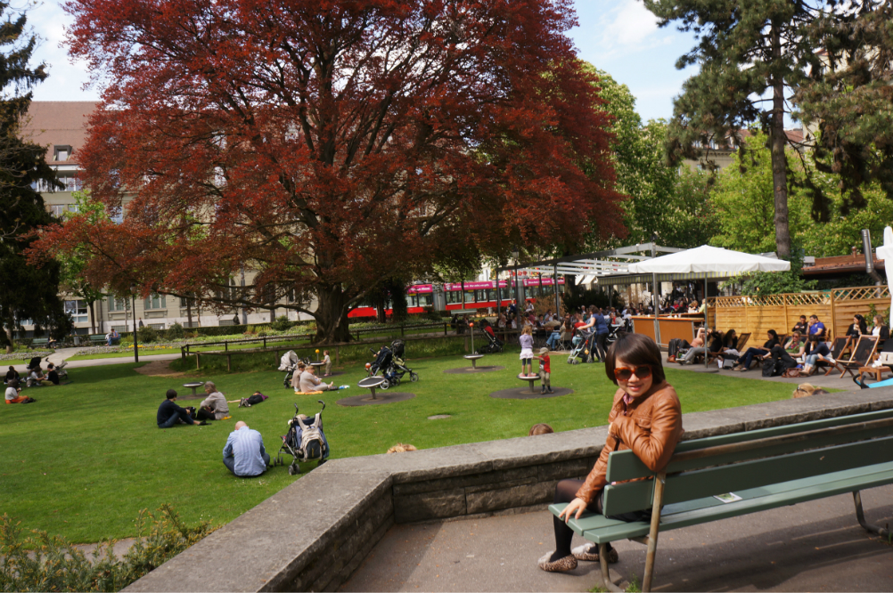 在苏黎世 最著名的班霍夫 斯大街 我们坐在草坪上休息