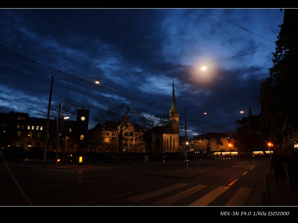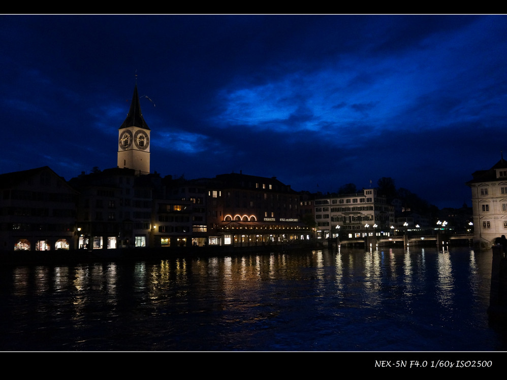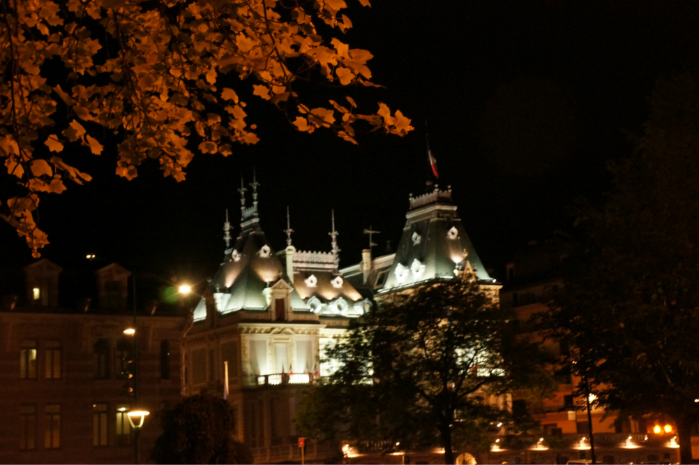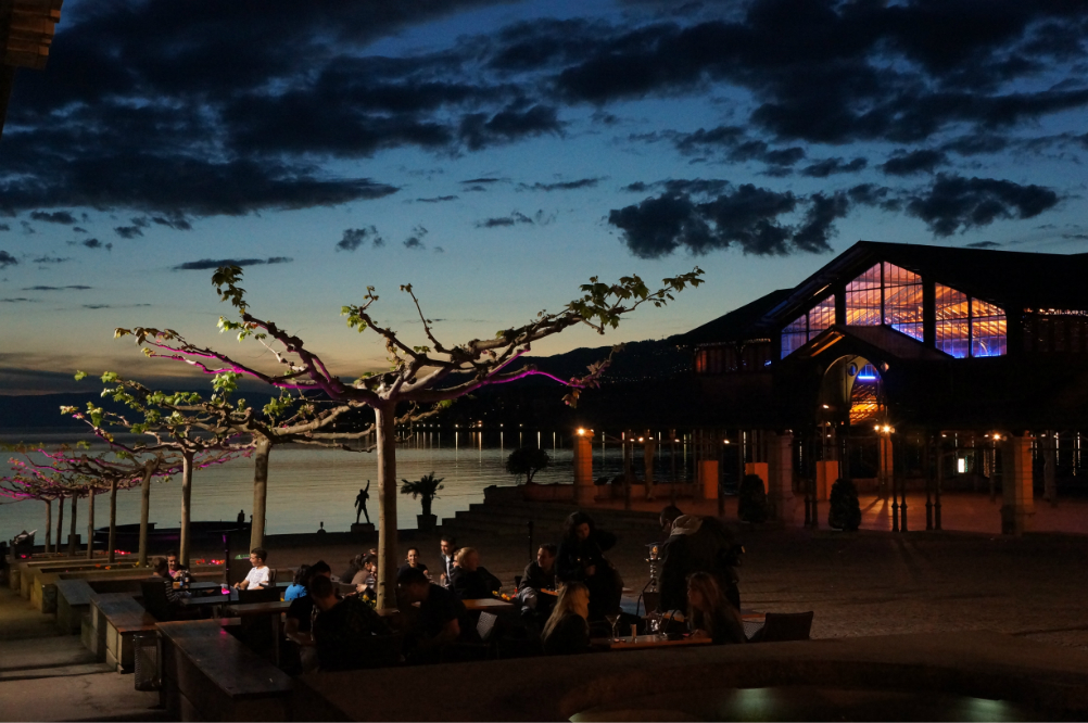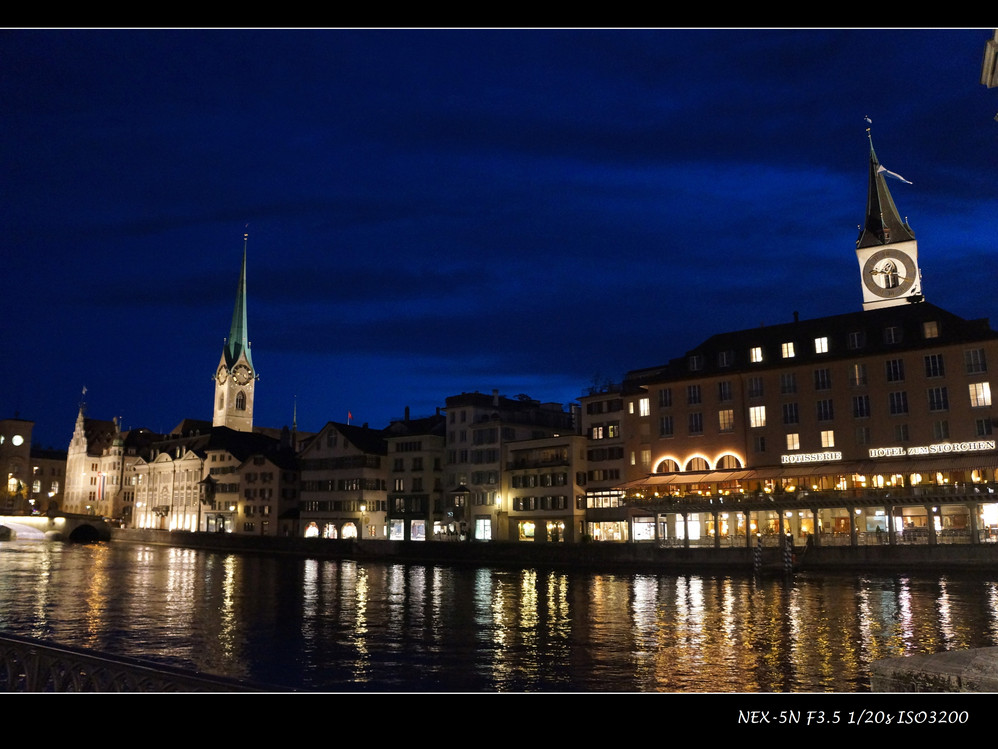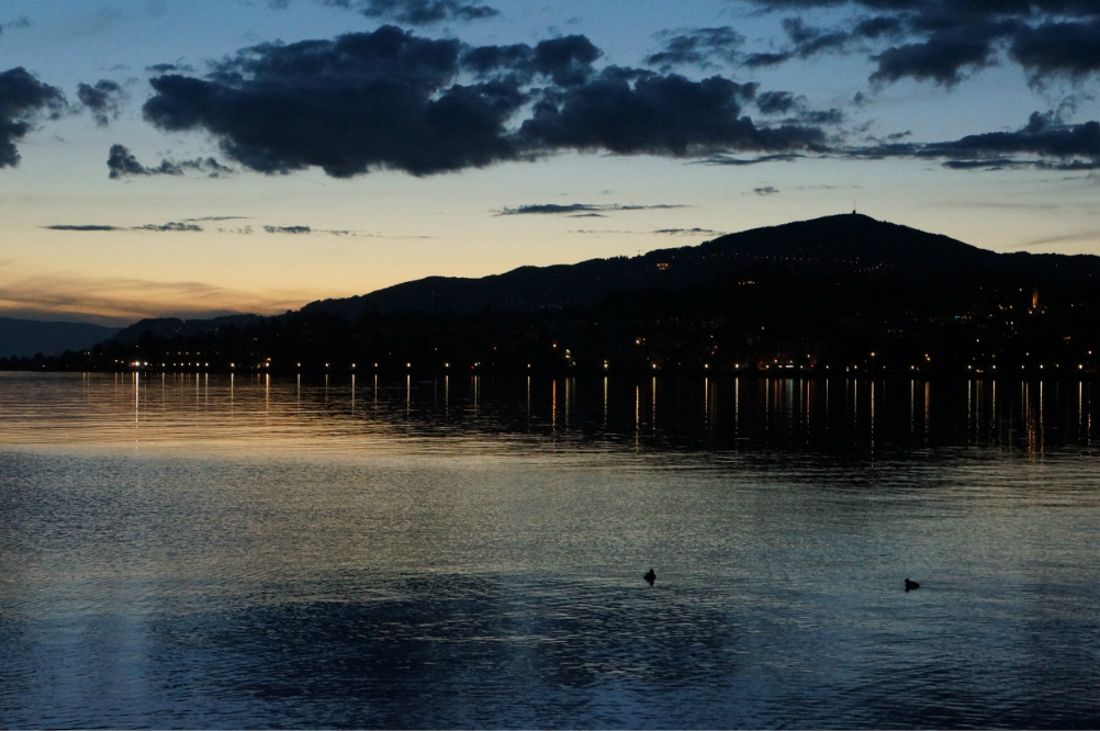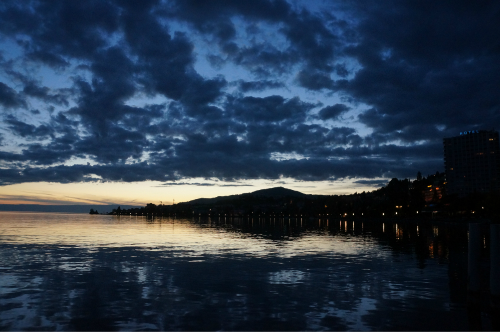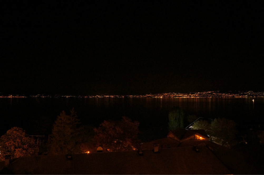 坐在酒店阳台拍到对岸洛桑 的夜景,哈哈