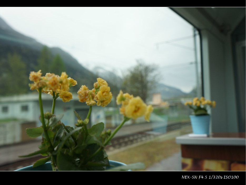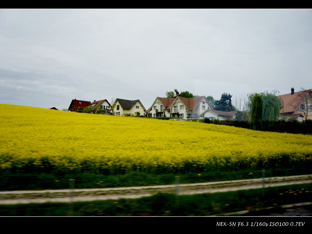 去瀑布的路上火车上拍到的油菜花,很漂亮的,只是车速快有反光拍的不好