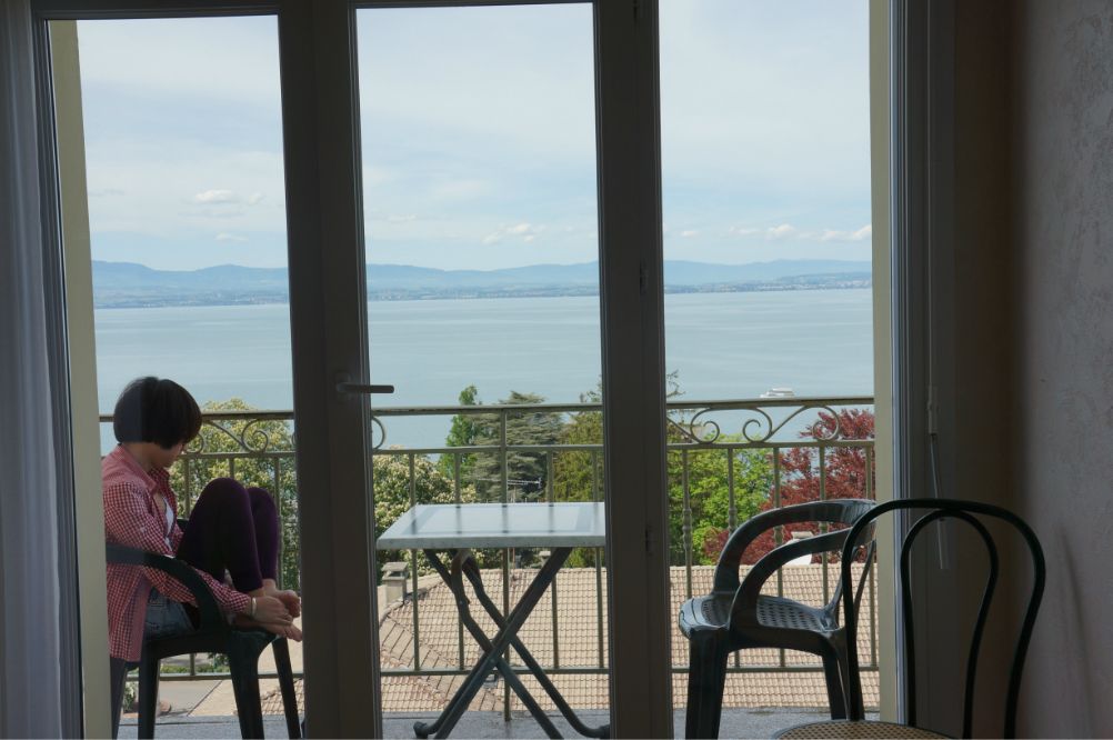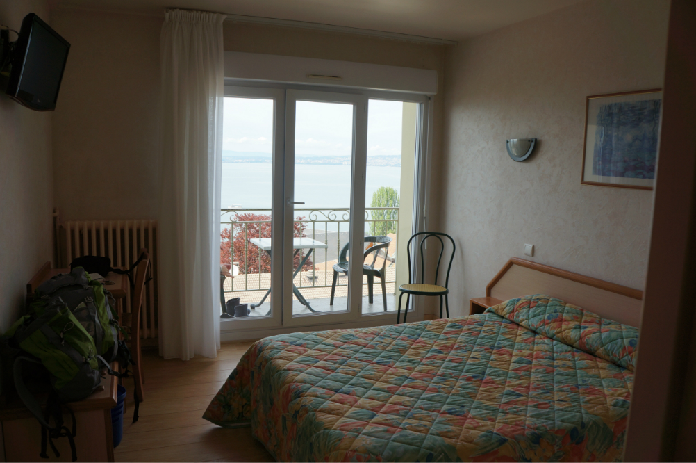 下船之后,我们走了1.5Km才到酒店,一路辛苦没拍照,直接到酒店啦,全湖景哦,之所以选择在依云 住宿就是因为这里酒店价格比对面的洛桑 便宜将近一半,而且风景好,依云 名声在外,那就这咯