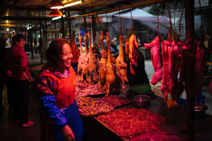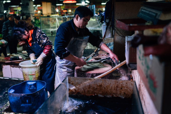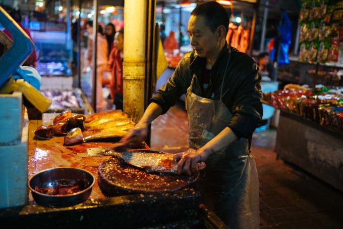 阿姨肉铺的灯光非常吸引人,我天天来拍,她开始不让,后来她也习惯了