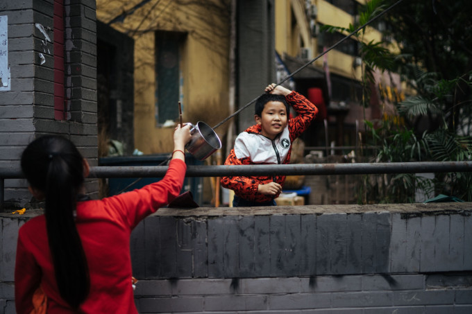 楼下有很多玩耍的小孩子,都是住在白象街的老重庆