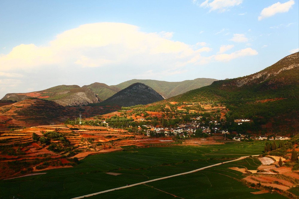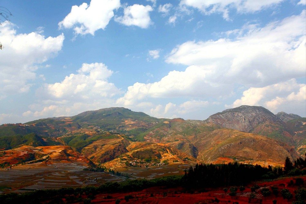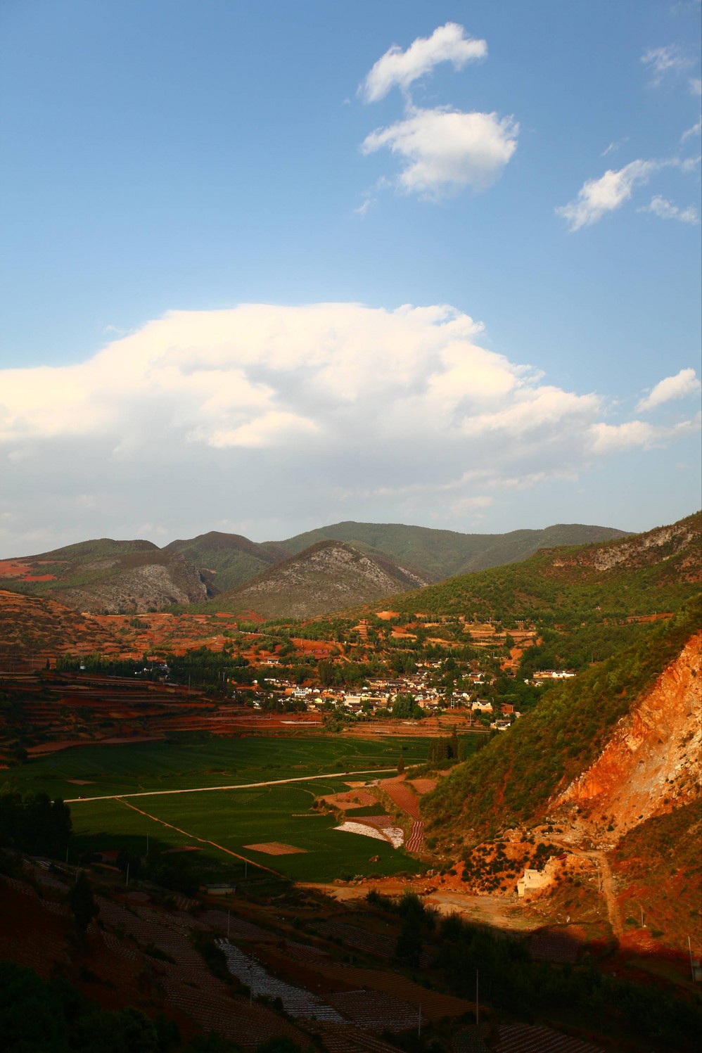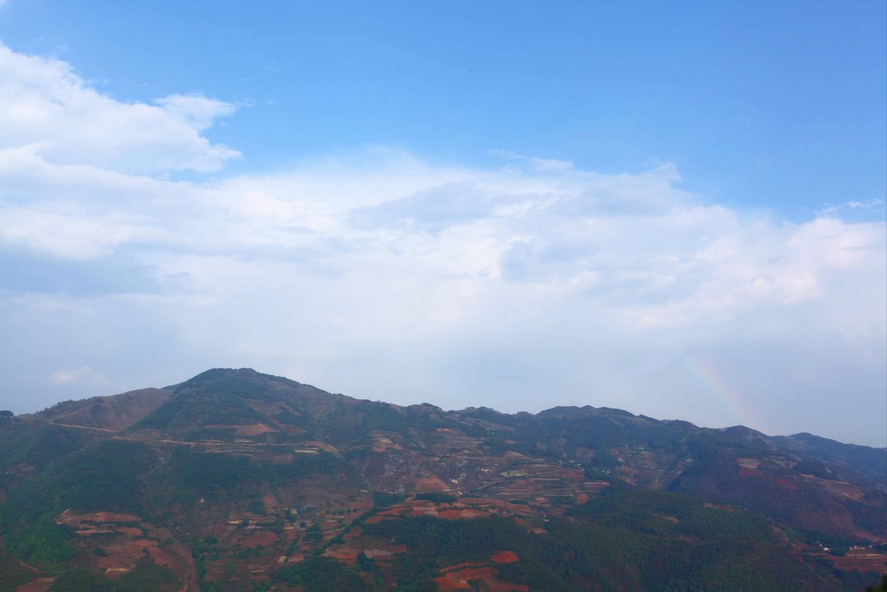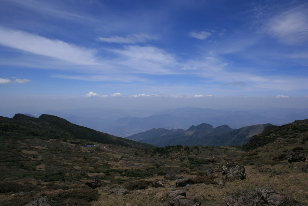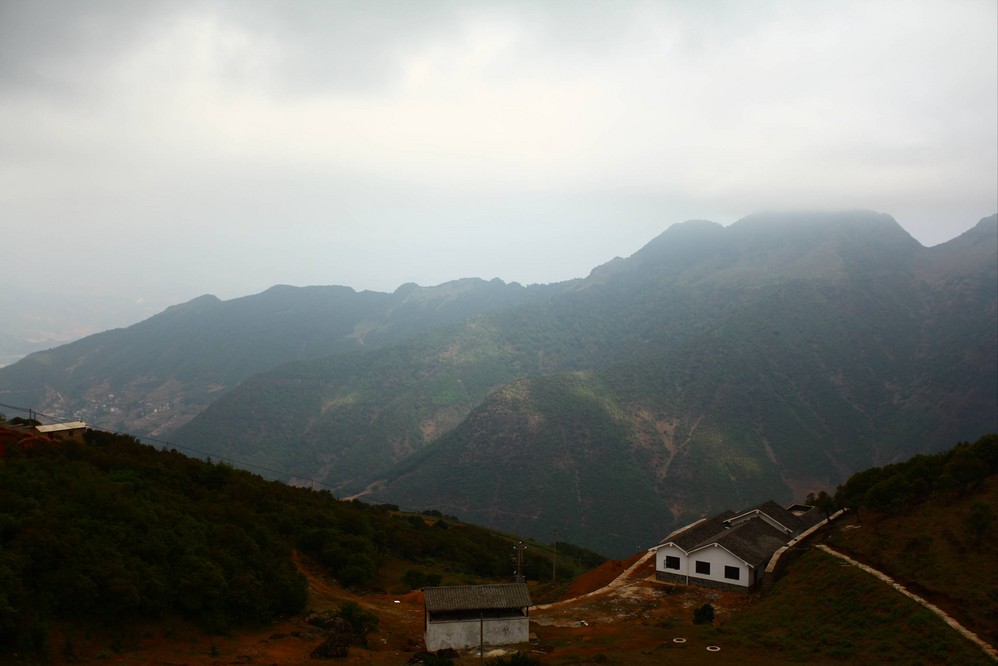 下到山脚回望轿子山,还是云雾缭绕,但天气开始好转。