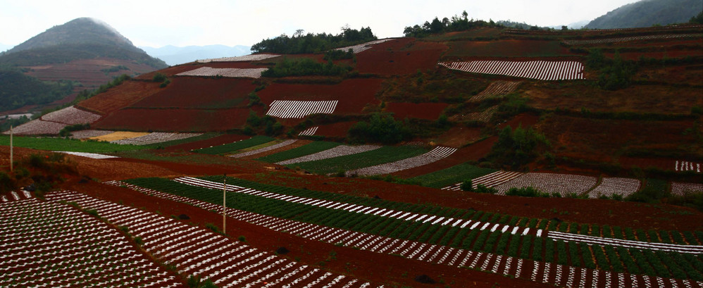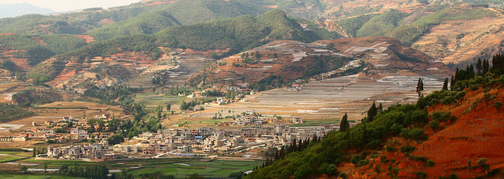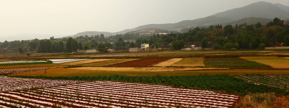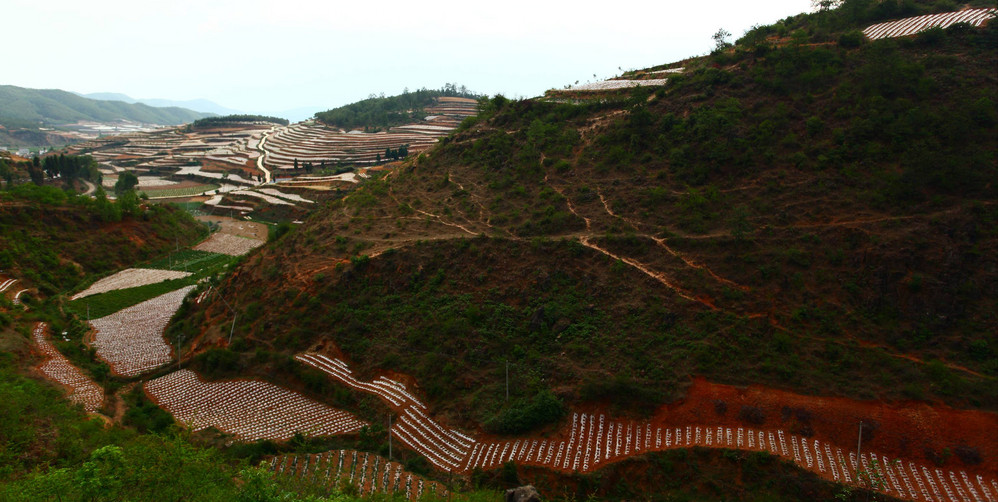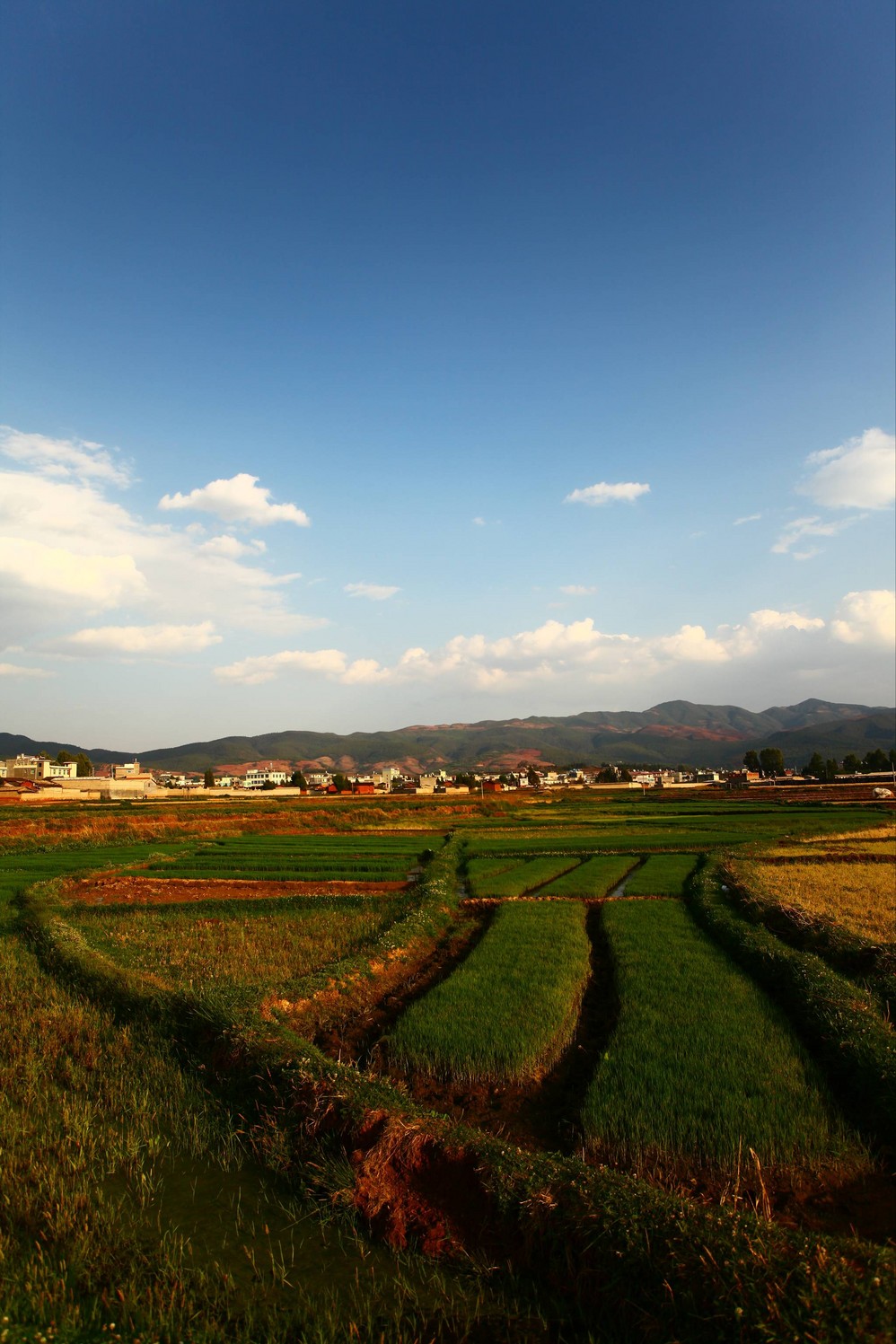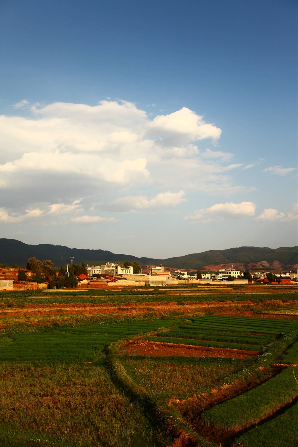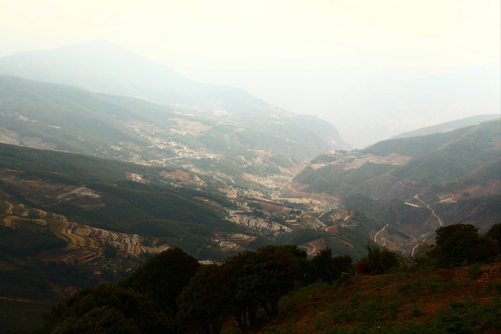下到山脚回望轿子山,还是云雾缭绕,但天气开始好转。