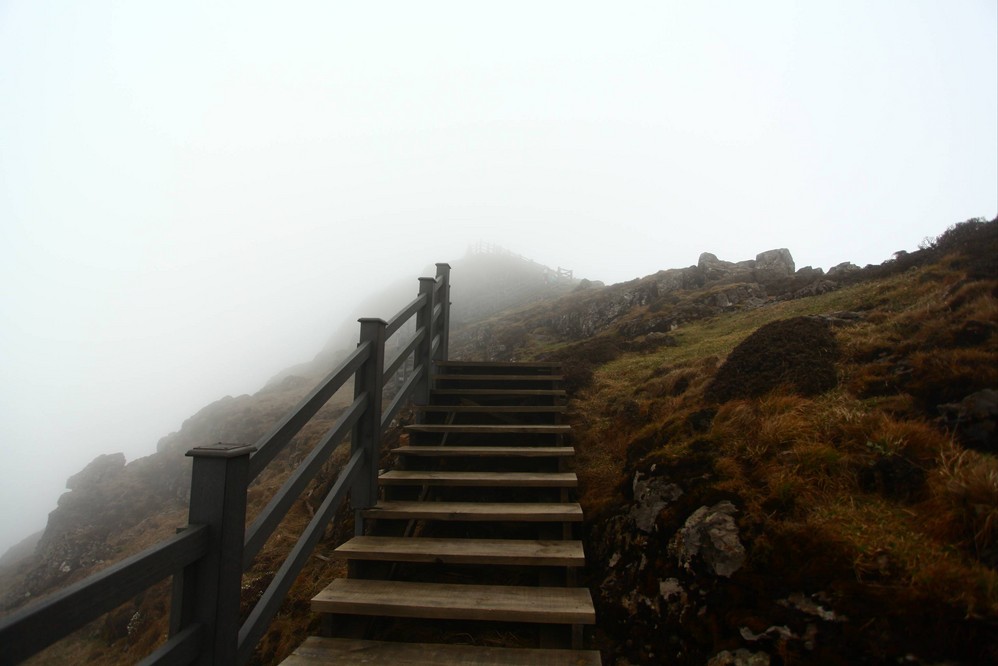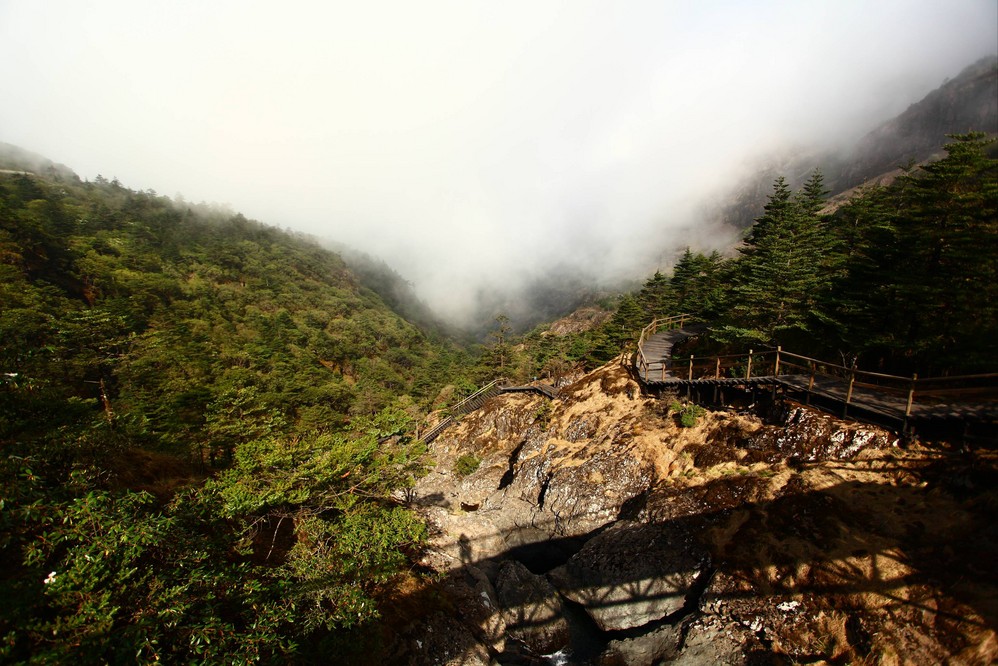 2007年曾去过,但这次想看看杜鹃花。结果花只开了少许。但没想到的是花没看到多少,却变成了赏雾,直到后来的大雨。最后云开雾散看见彩虹
