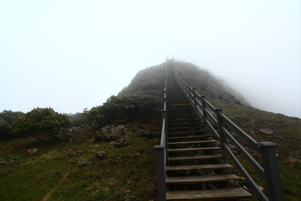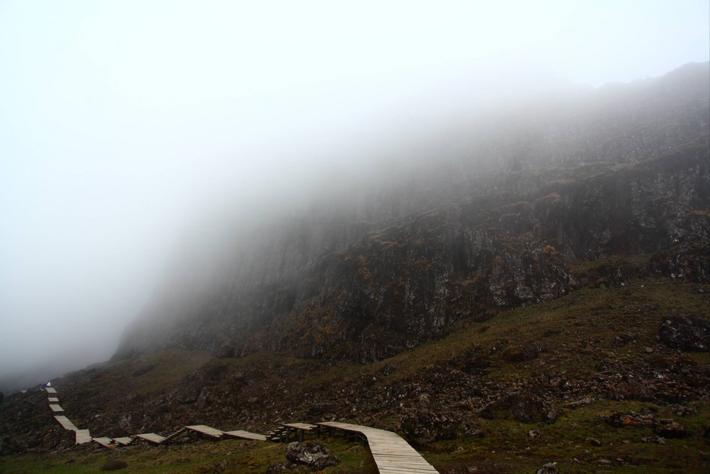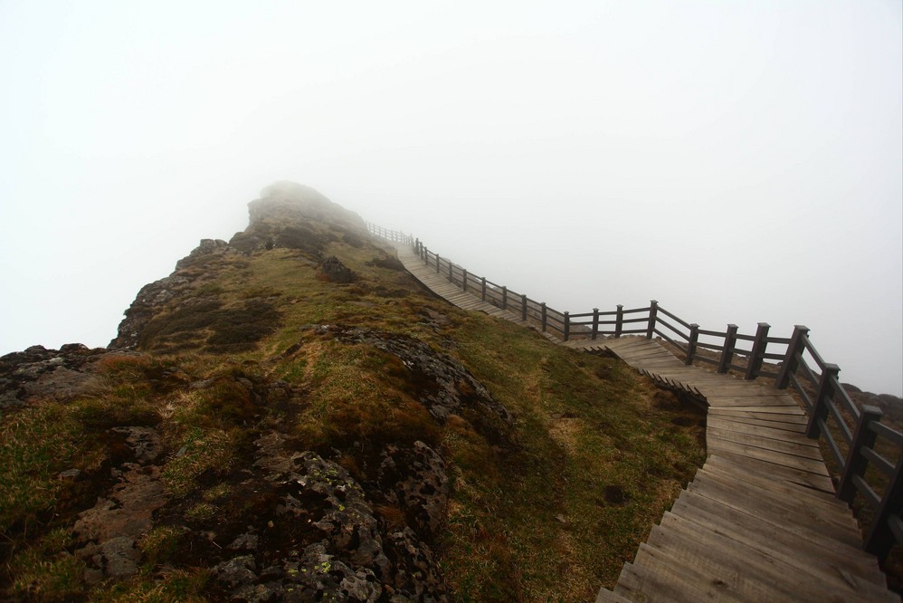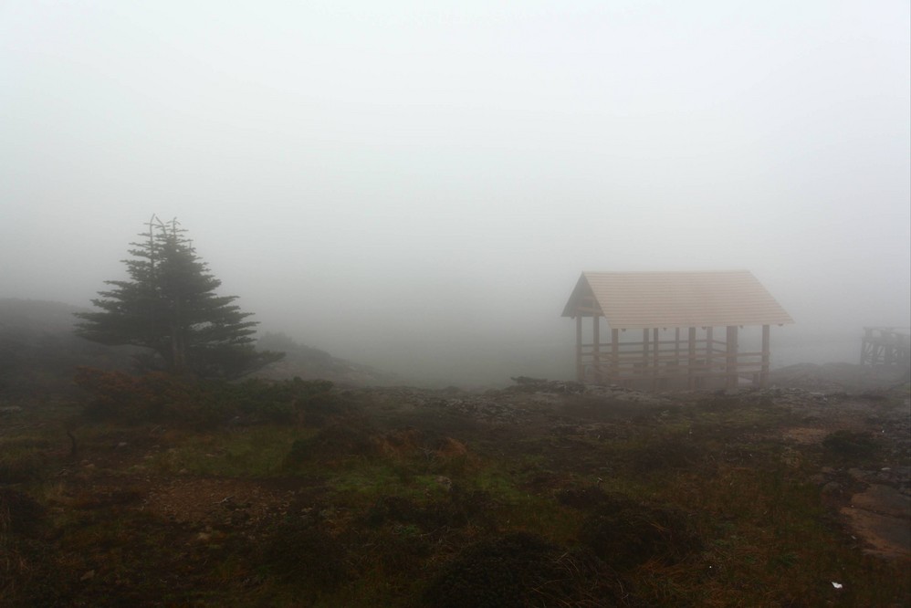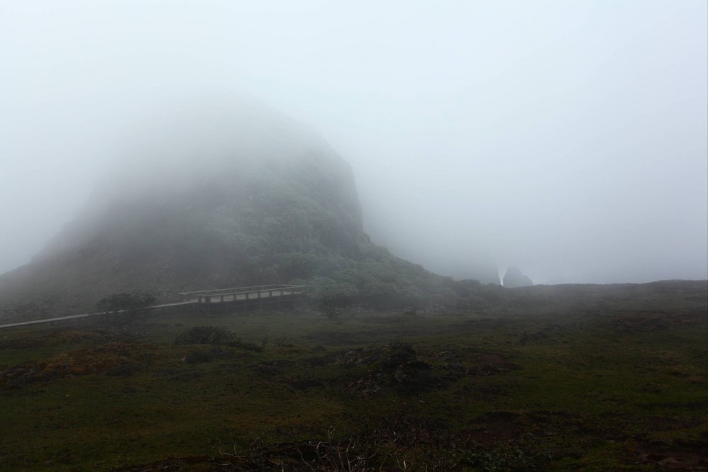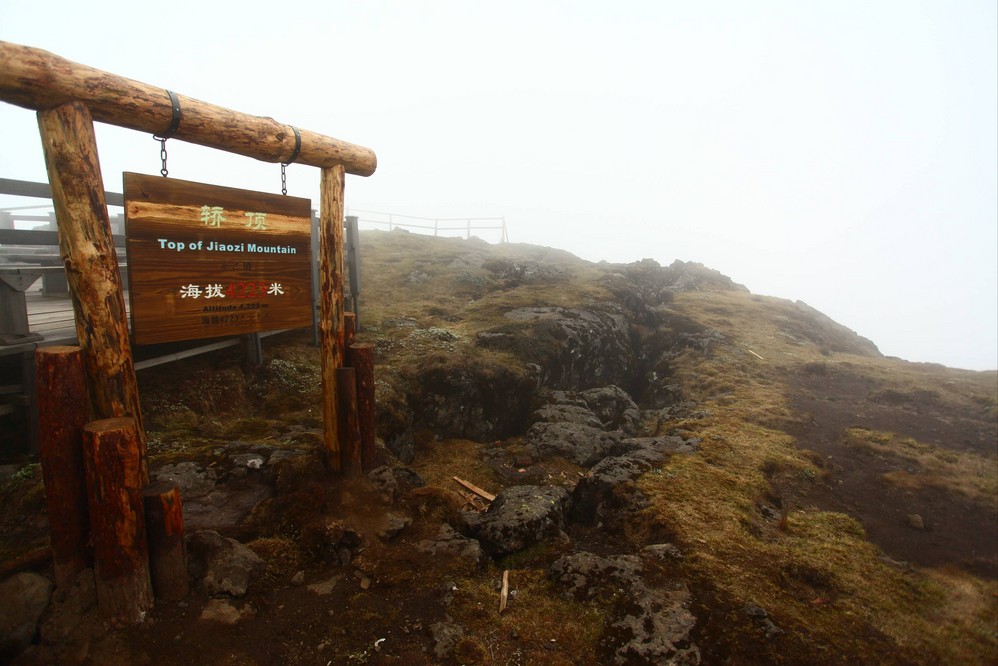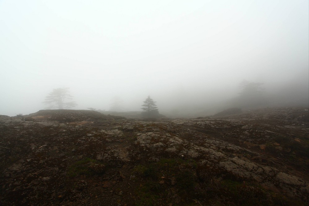 到顶峰后开始下山没想到的是雾越来越大,而且开始下雨。