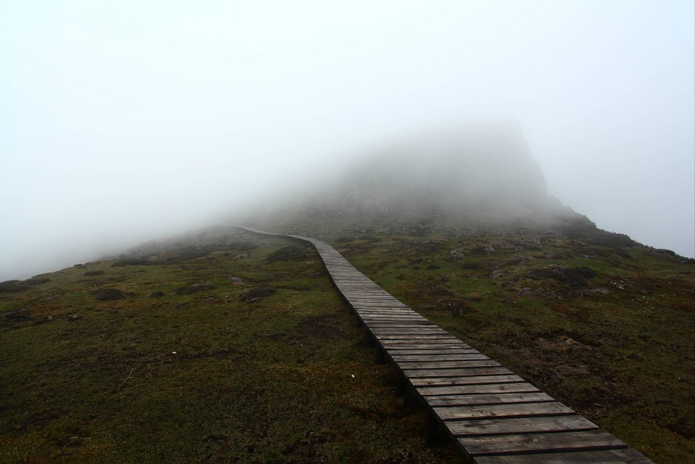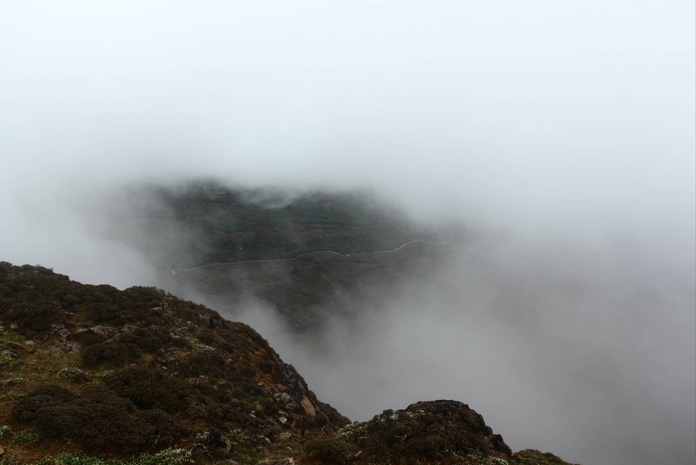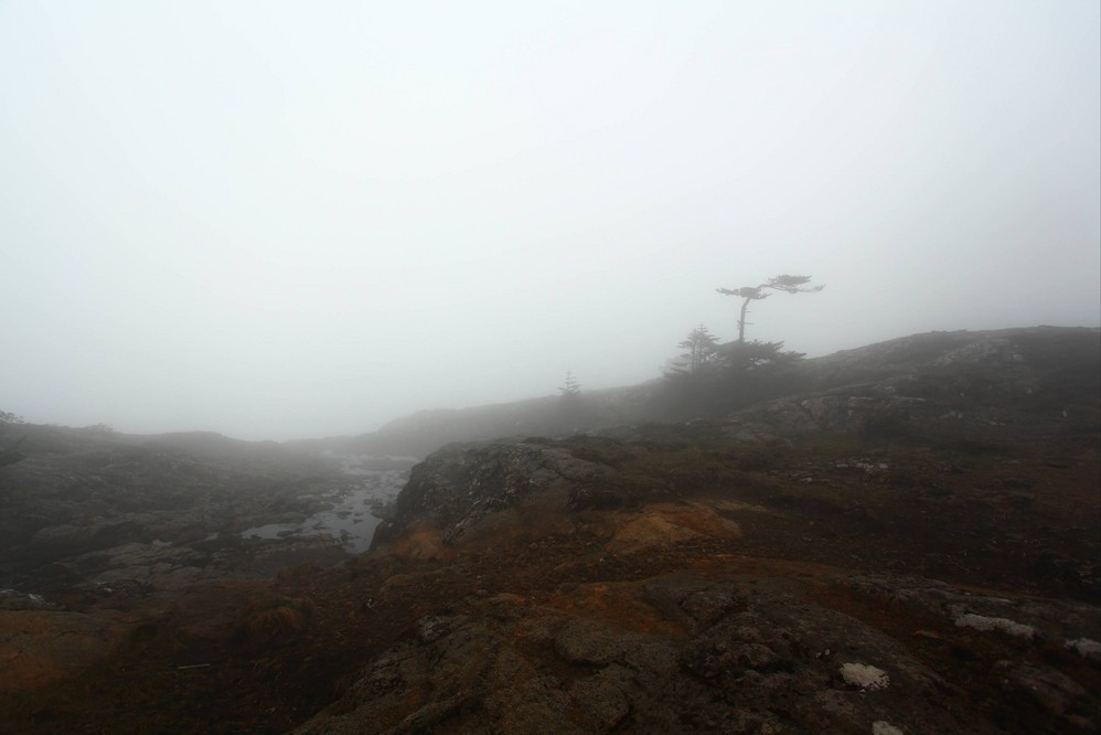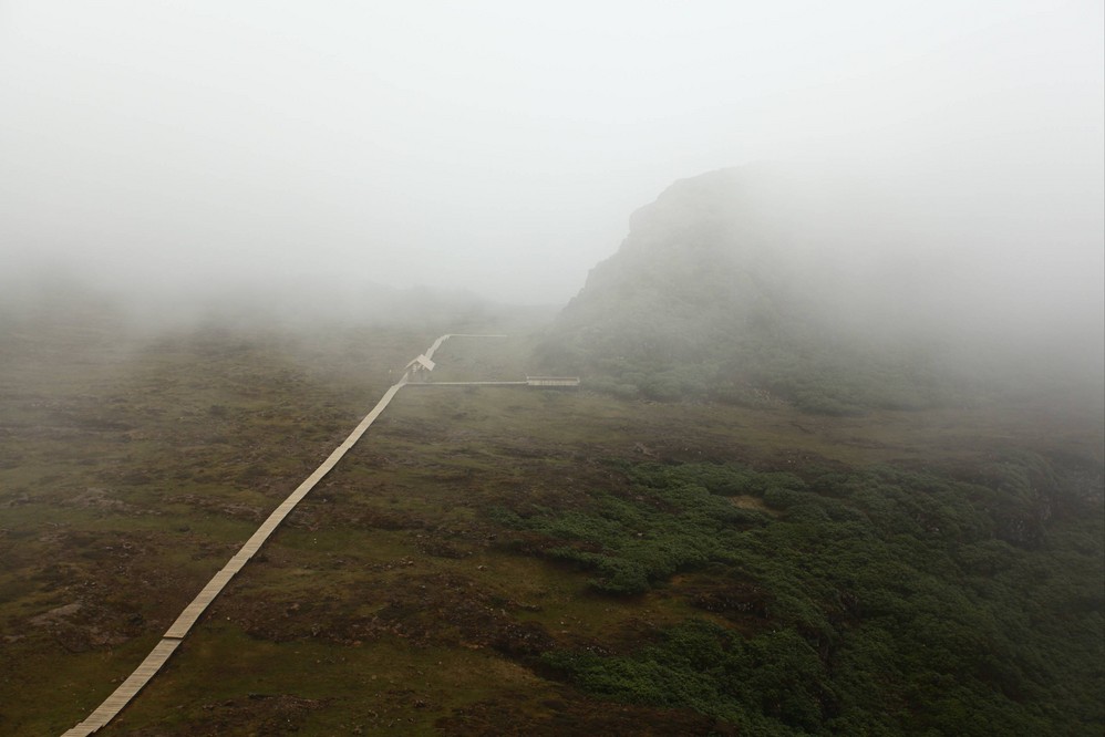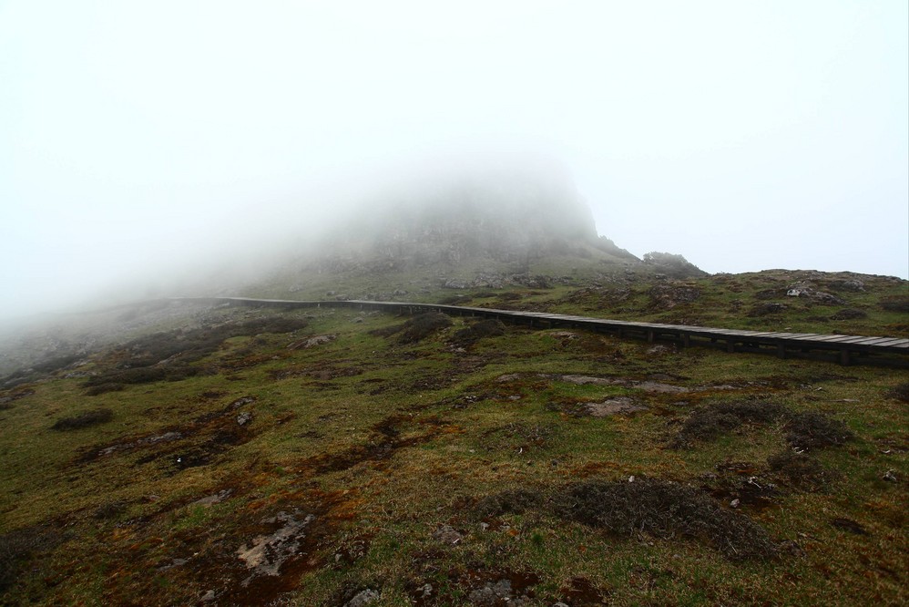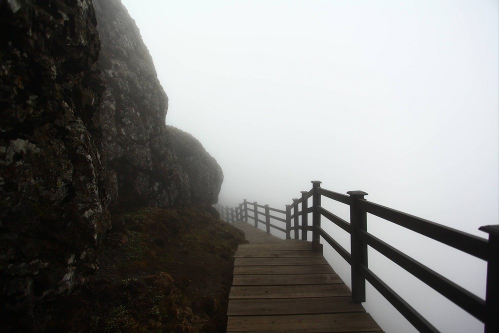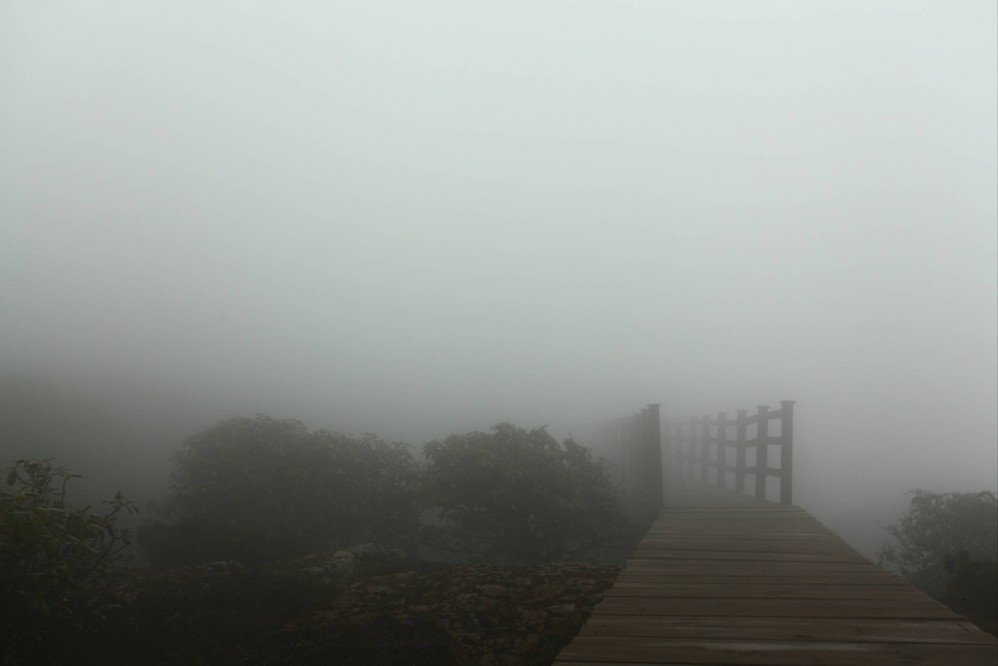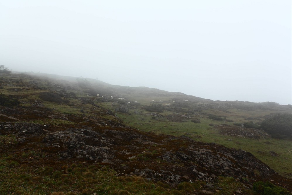 到顶峰后开始下山没想到的是雾越来越大,而且开始下雨。