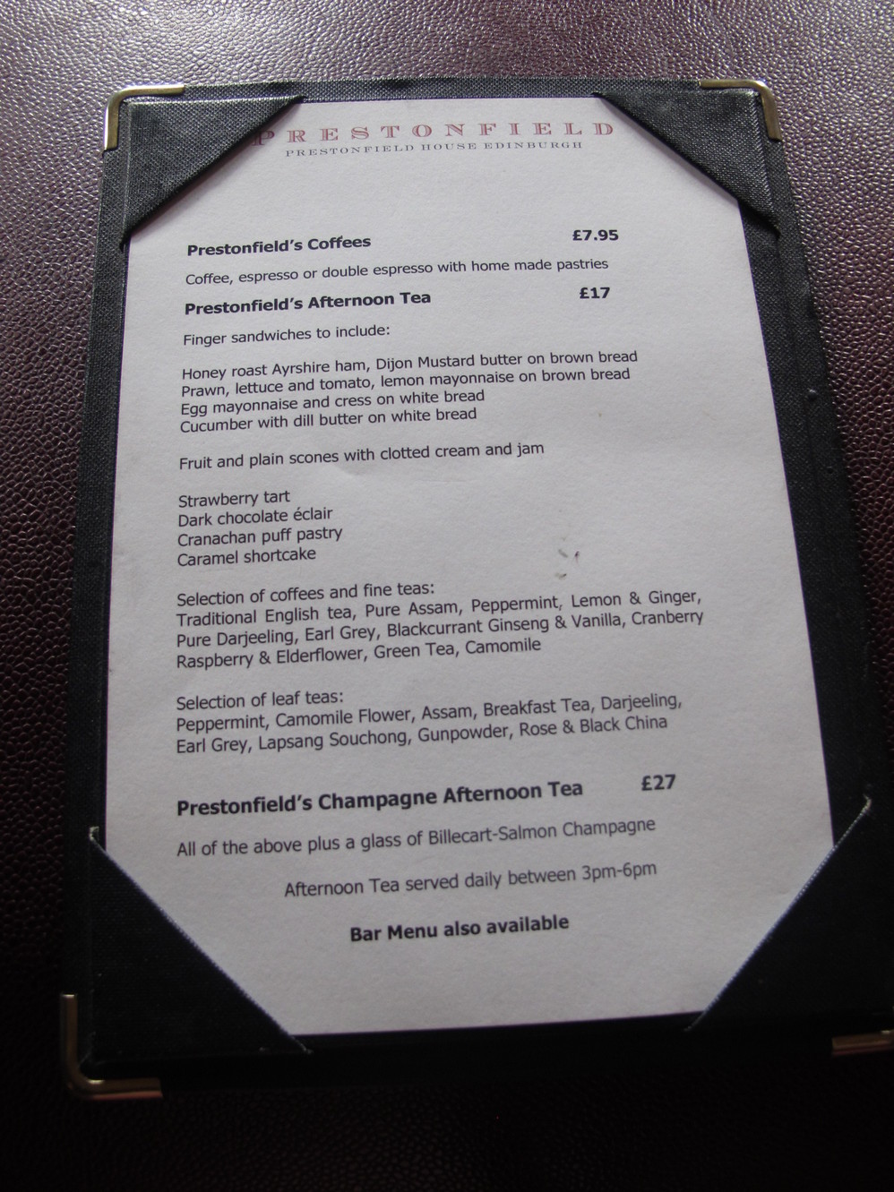这里Prestonfield 's Coffees - 7.95磅,