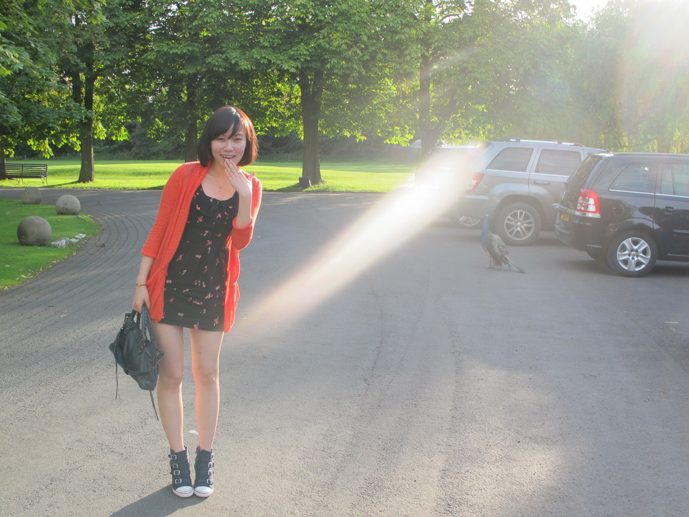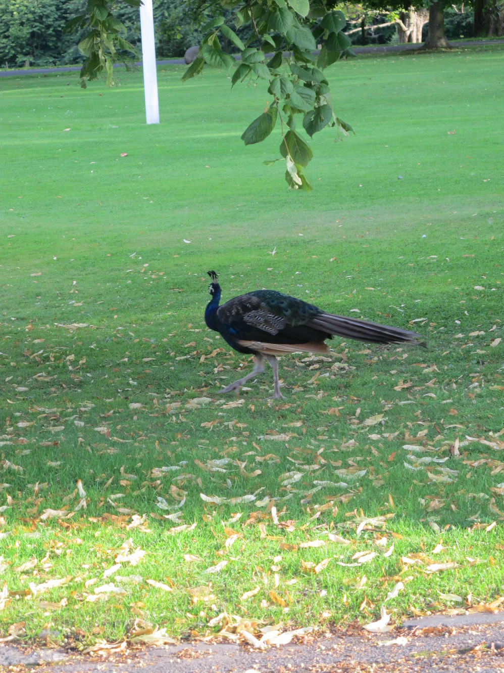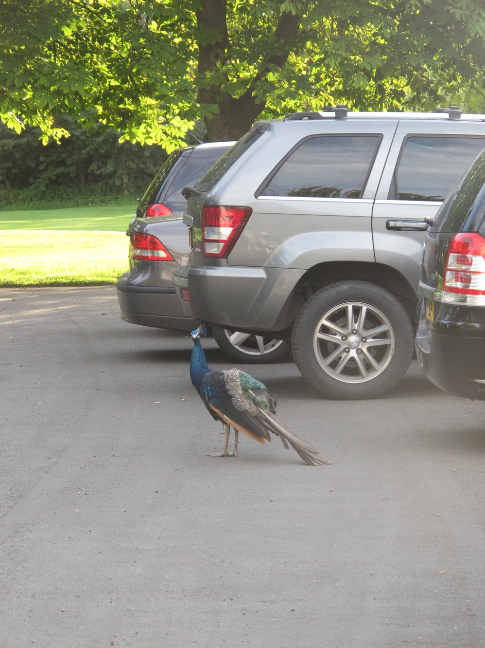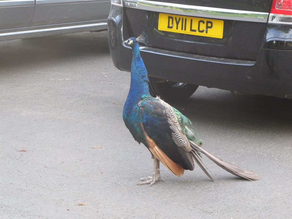 正當還在驚訝那隻高地牛時,同伴尖叫到,看!孔雀!! 這隻孔雀居然悠哉遊哉的在 drive way 上散步呢~