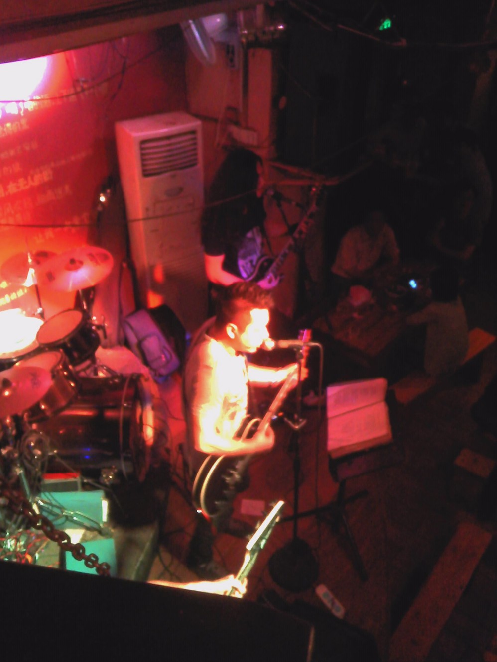主唱和我的兄弟一起组过乐队,所以我们点歌不要钱。兄弟问我要听什么。我说张楚的《姐姐》吧。兄弟开玩笑说不行,这是他的保留曲目。每次喝醉都上台高唱,姐姐,带我回家。我上次在丽江 也是,泡的那个吧的兄弟也没帮我唱姐姐,唱的是无可挣脱。这次唱的是二手玫瑰的幸福往哪里开。