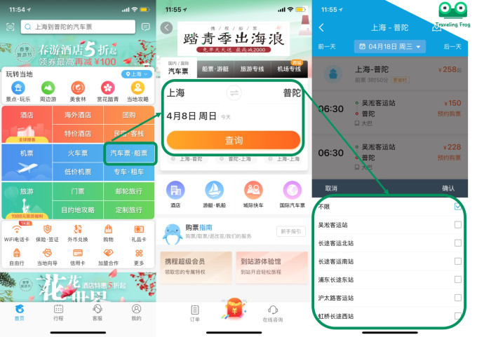 (3)交通:如果你通过网上购买上海前往沈家门港的大巴车票,你就会发现,车站如此之多,很多车站名称都看起来相似,位置却相差很远。所以购买车票师,一定要选择距离自己较近的车站,前往前一定要核对好车站位置。(同样是沪太路上的车站,蛙主的朋友走到了另一个,结果我俩错过了大巴,这种事我会说?)