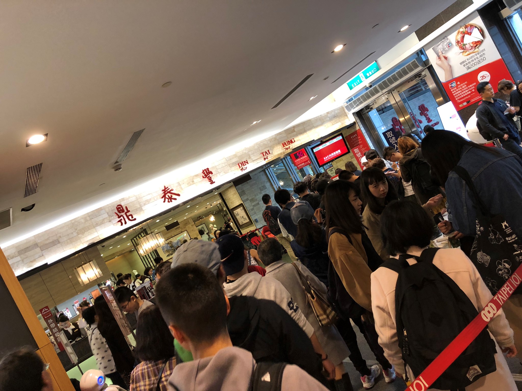 在101地下食府,可谓美食云集,要不是我们都吃撑了,肯定一一品味。B1排长队的,只有一家:鼎泰丰。基本都是游客,本地人说他们家的味道都变了,而且101店的口感没有信义店好,当然我也没有发言权,因为在上海,这个米其林1星的定价有点离谱,所以,就算台北人都不推荐,我还是想尝一尝,决定走之前一定要来吃一顿。排队1小时也无所谓了。
