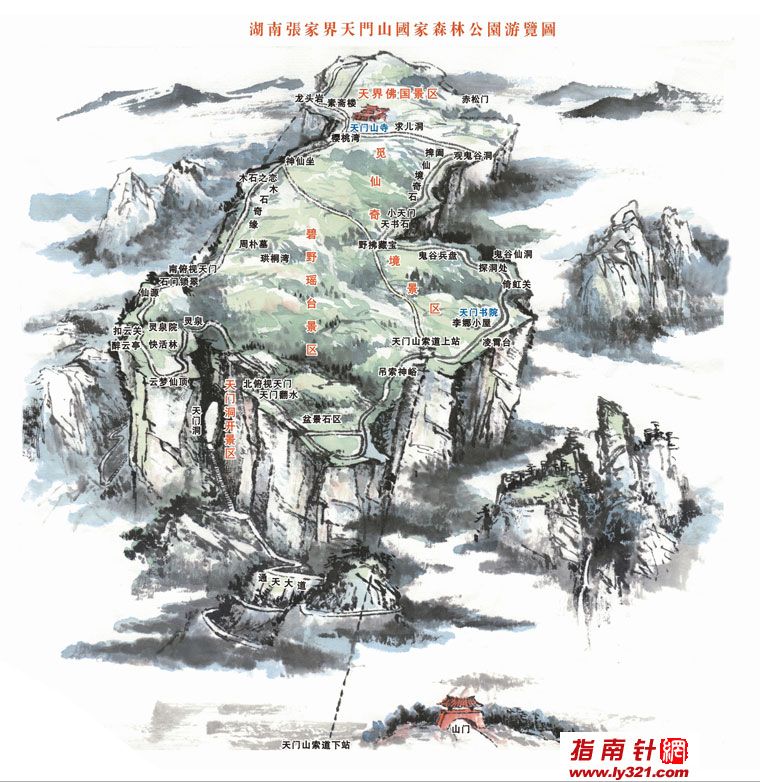 从网上找的天门山国家森林公园图(在天门山索道处,也有免费的景区图提供~)