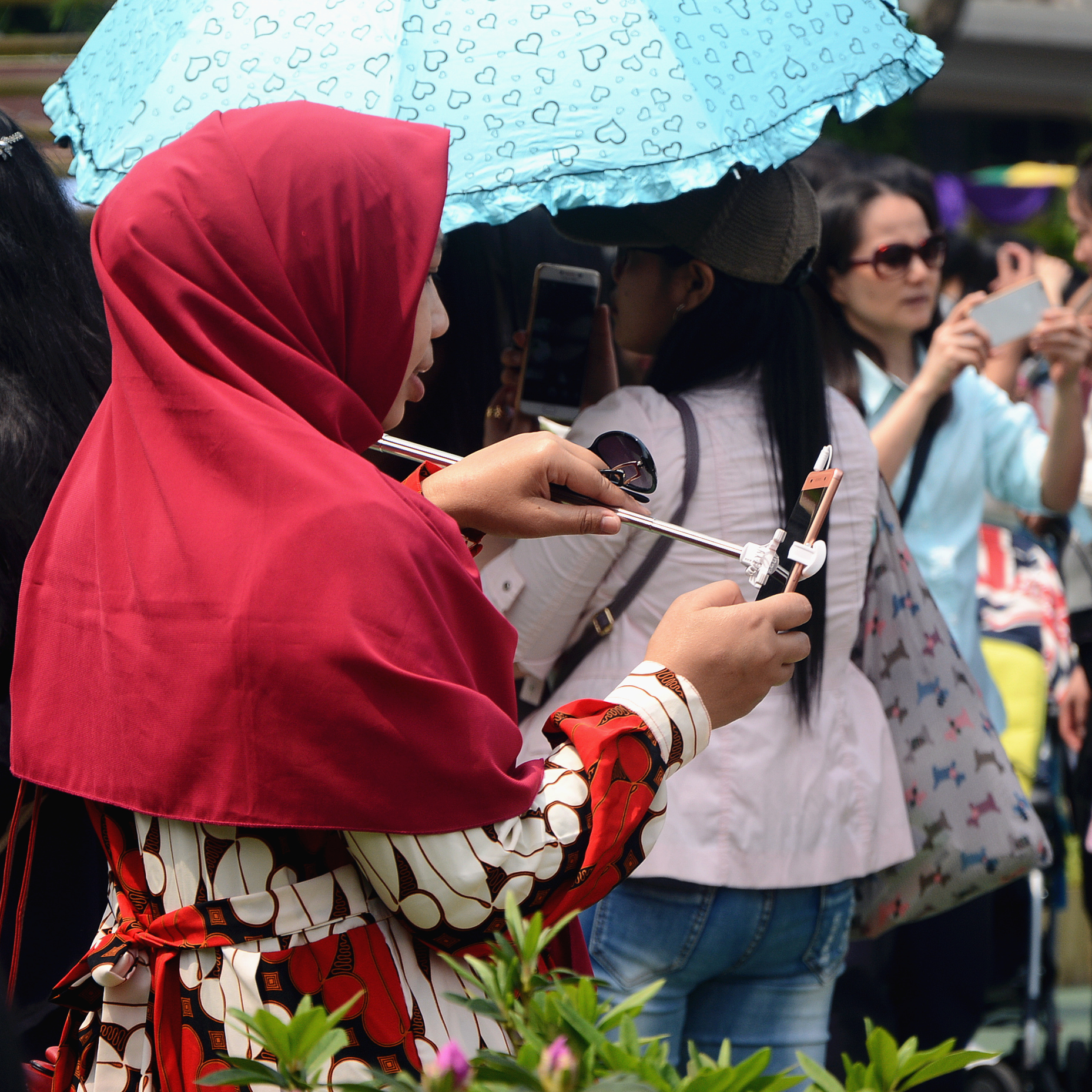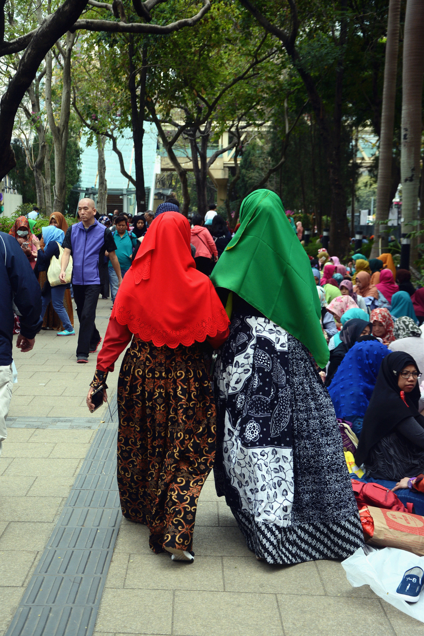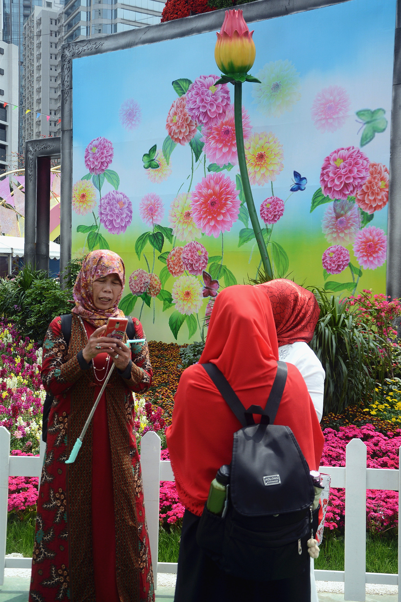 花丛中穿梭飞舞着身裹色彩艳丽服装的菲律宾、印尼女郎,将维园装扮成五彩缤纷的“花花世界”。。。