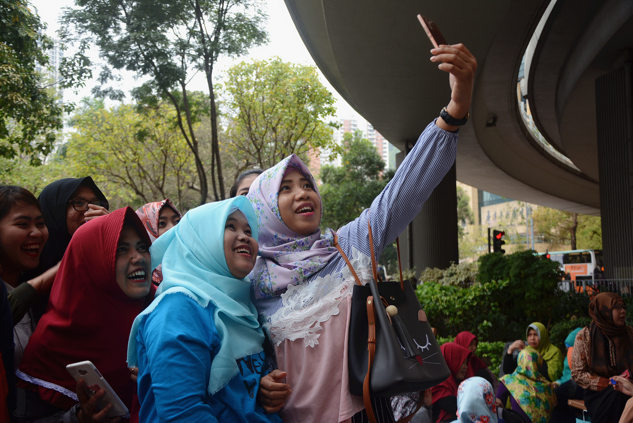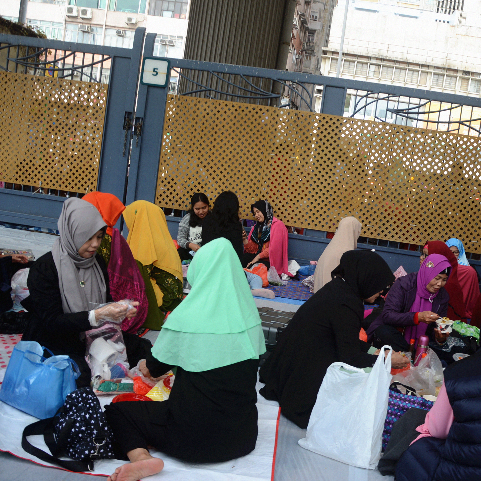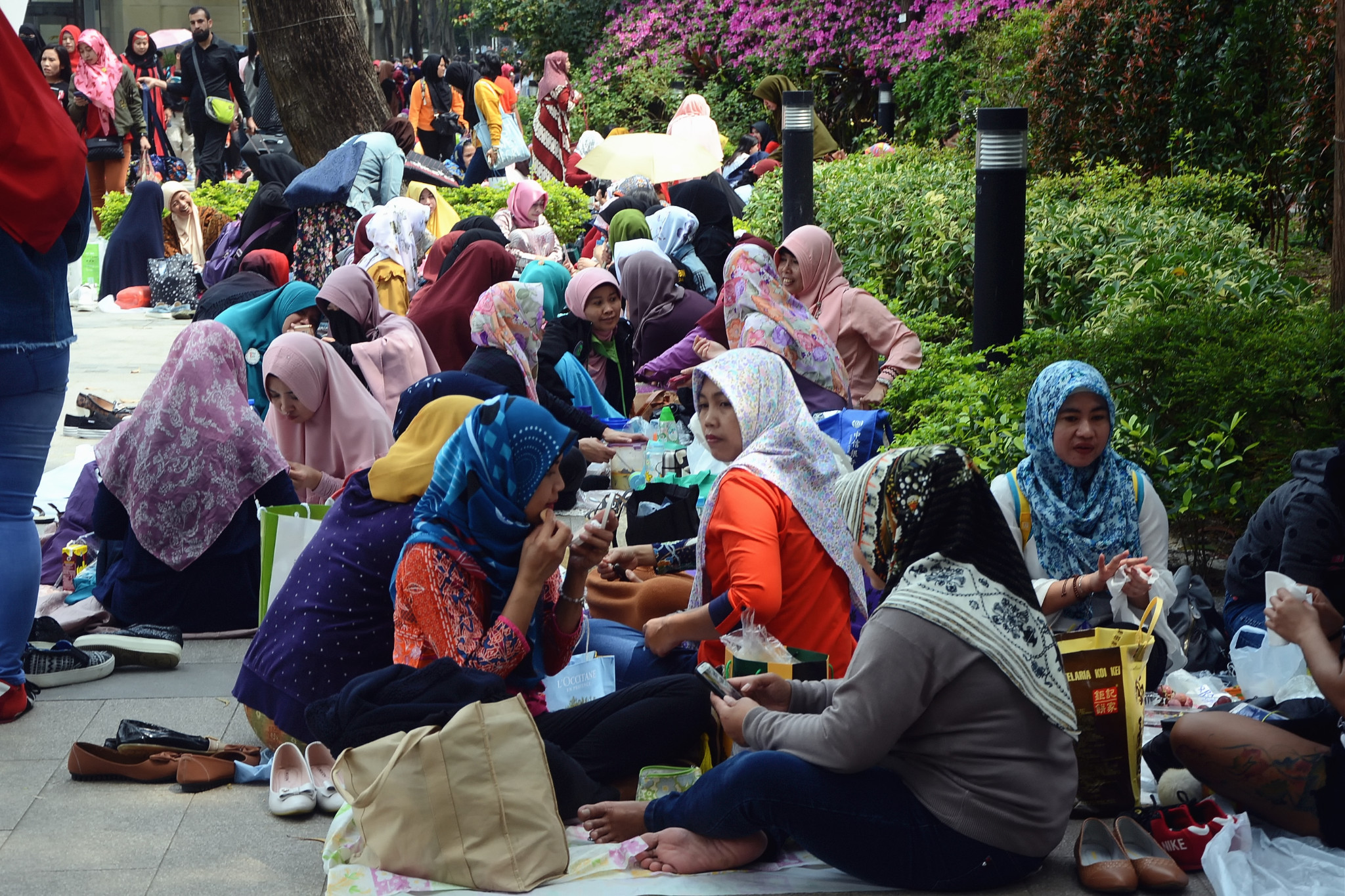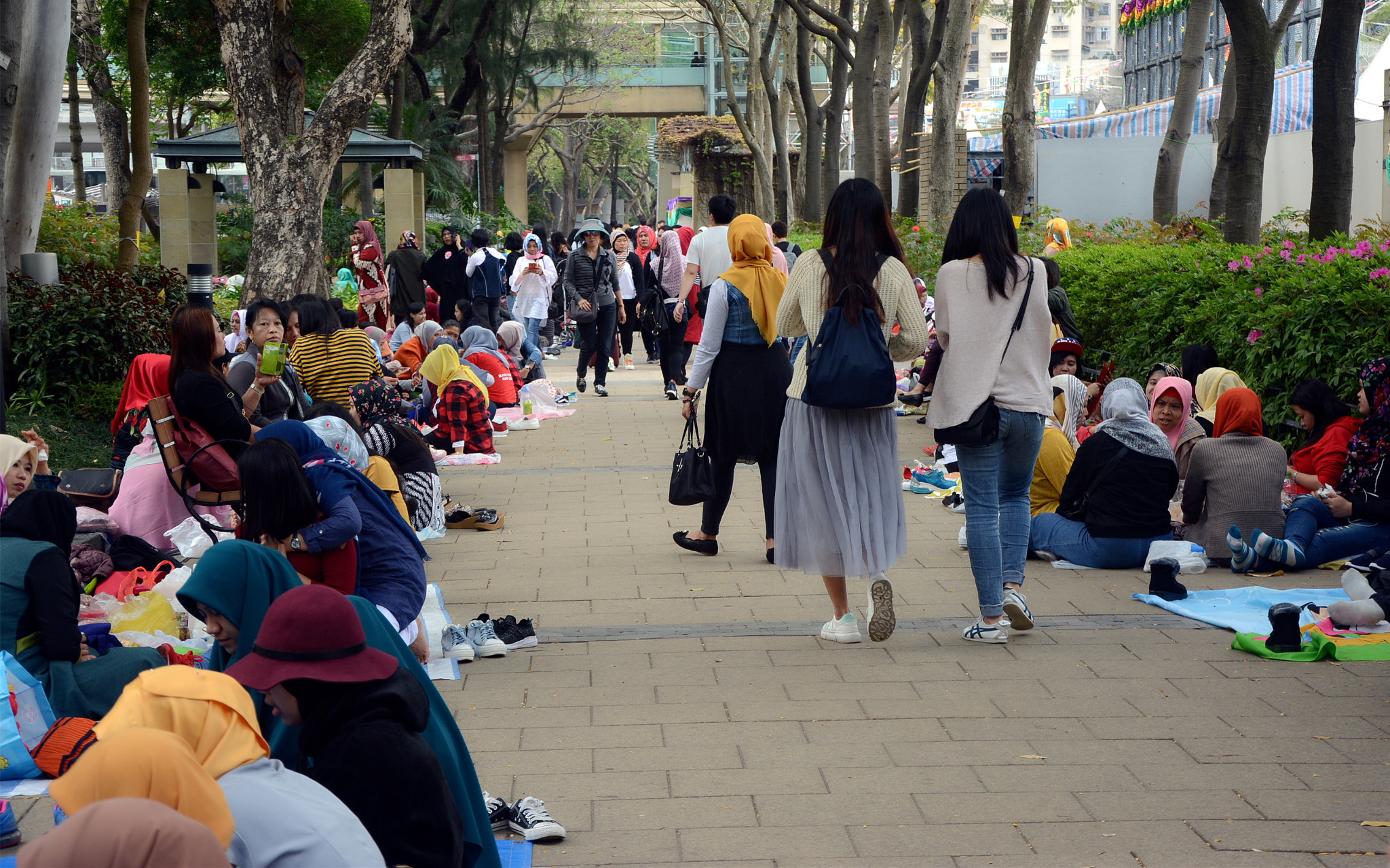 适逢周末,也是在港服务的东南亚女佣的休息日。