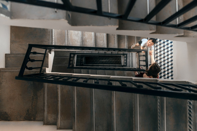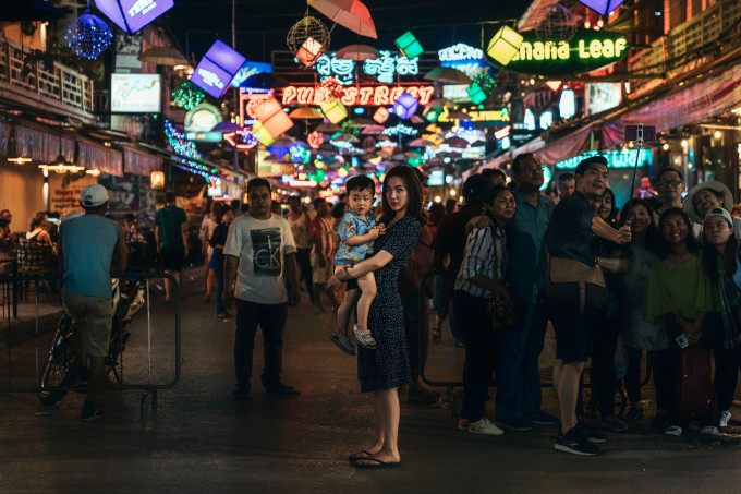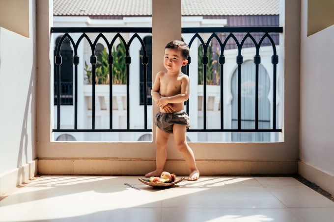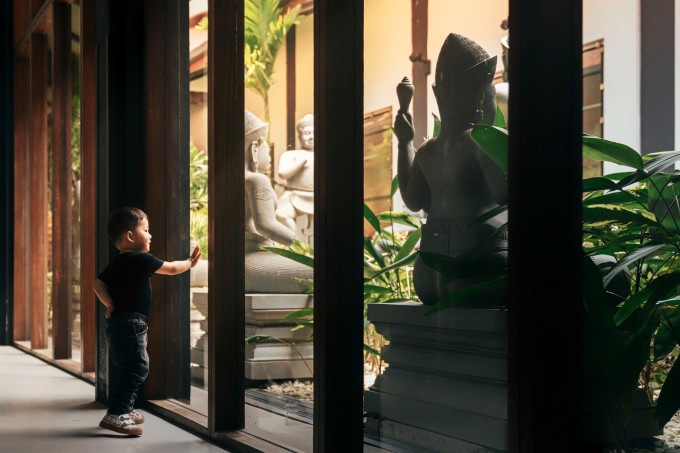 泰山在酒店,不爱坐电梯,好在暹粒的酒店楼层都不高。我静静的跟在老婆和泰山的身后,望着儿子笃定地做一件事----下楼梯。于是,我等上一些时间,让他用他2岁的小脚从容的走下去。高处俯拍楼梯的护栏,也能成为非常直观的视觉引导线,和妈妈在引导线的端点互动也能构成很有意思的画面。