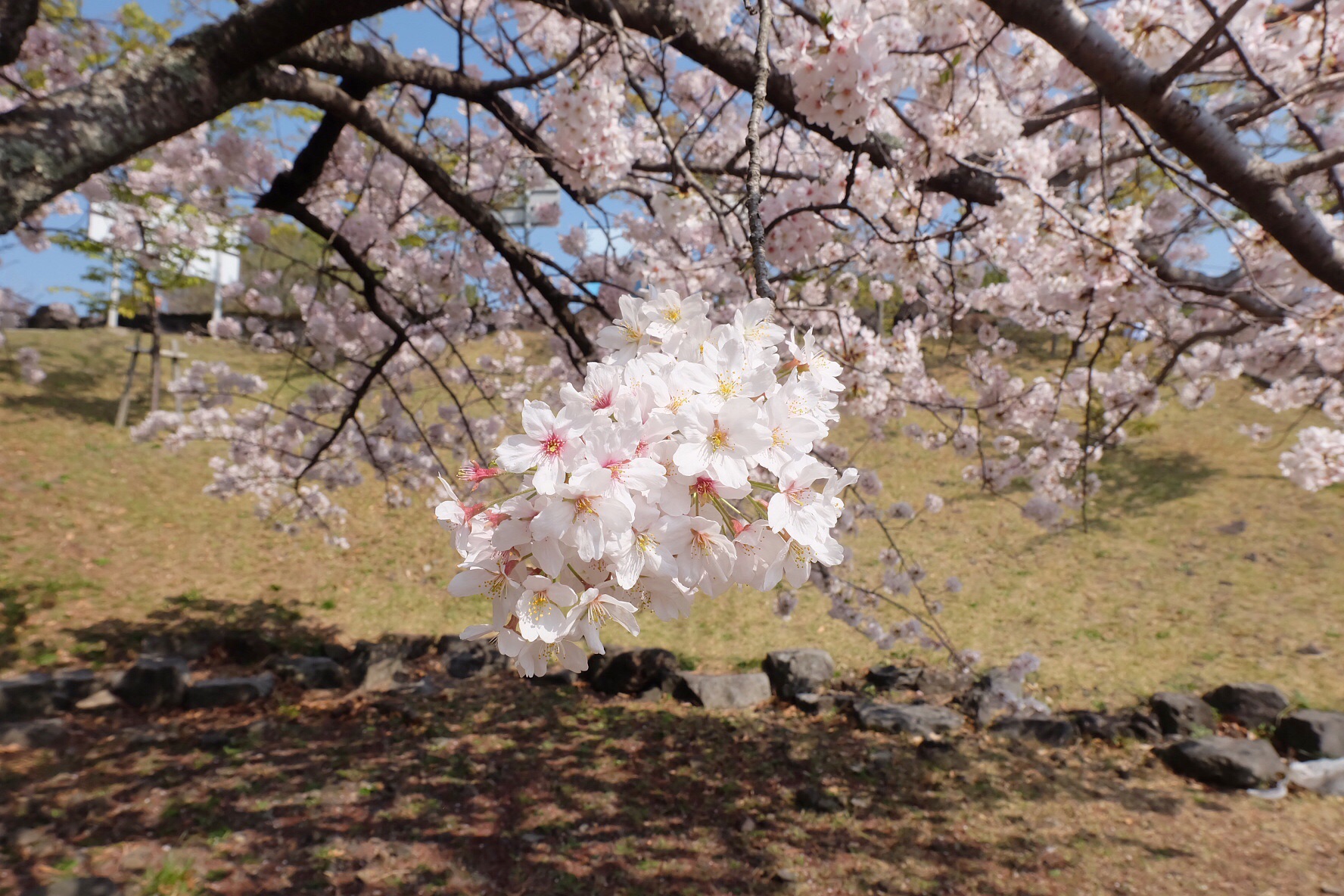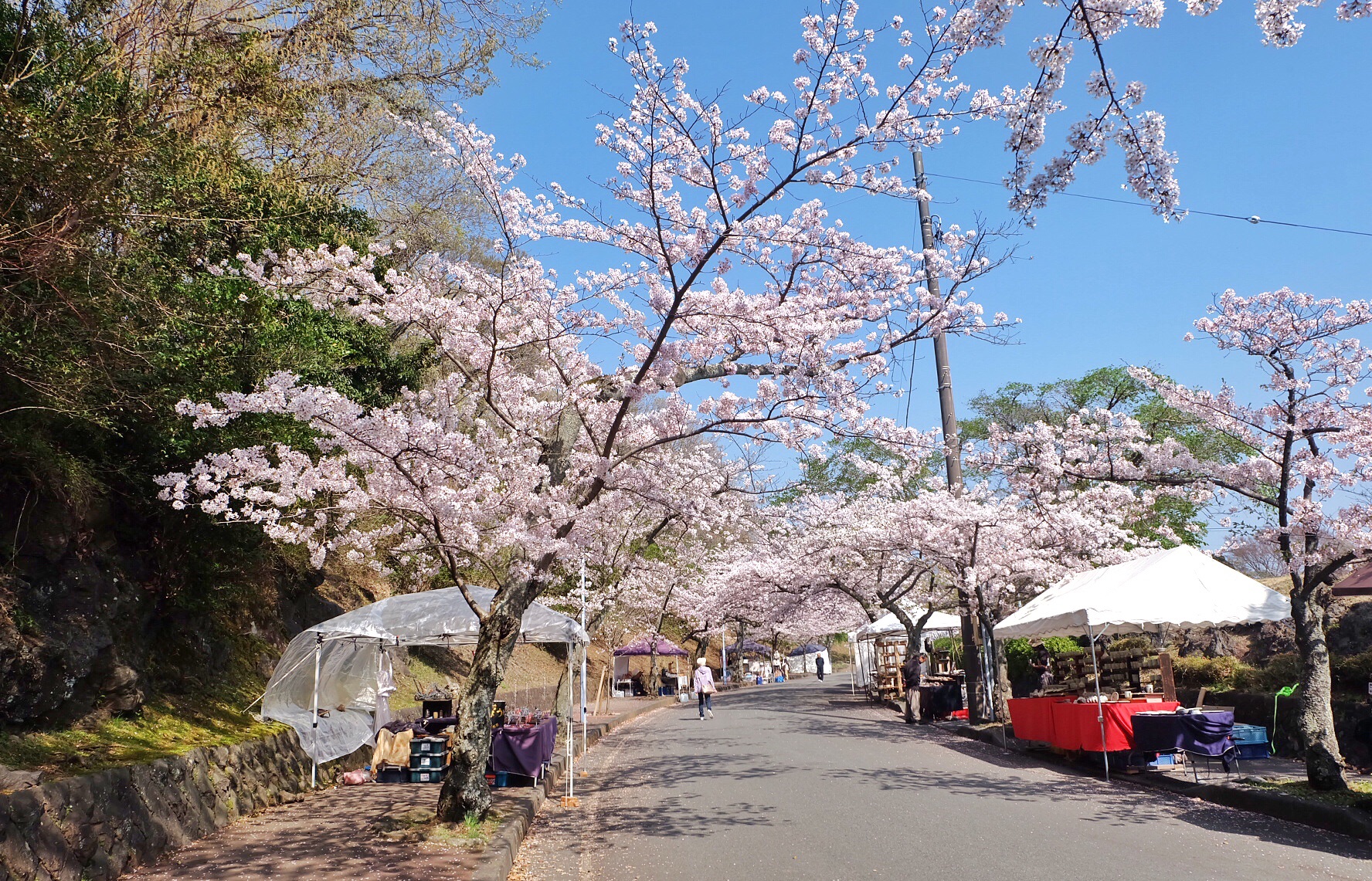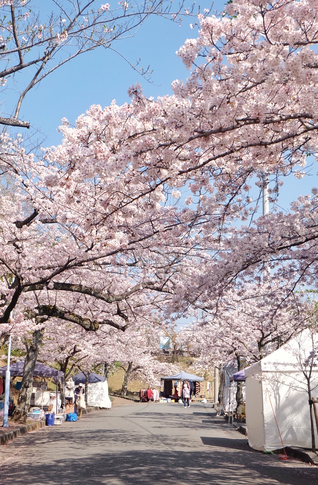 既然是桜まつり,自然少不了临时支起的帐篷与摊铺,只是这里还谈不上被境外游客攻占,非周末日本人也不多,摊铺都显得有些冷清