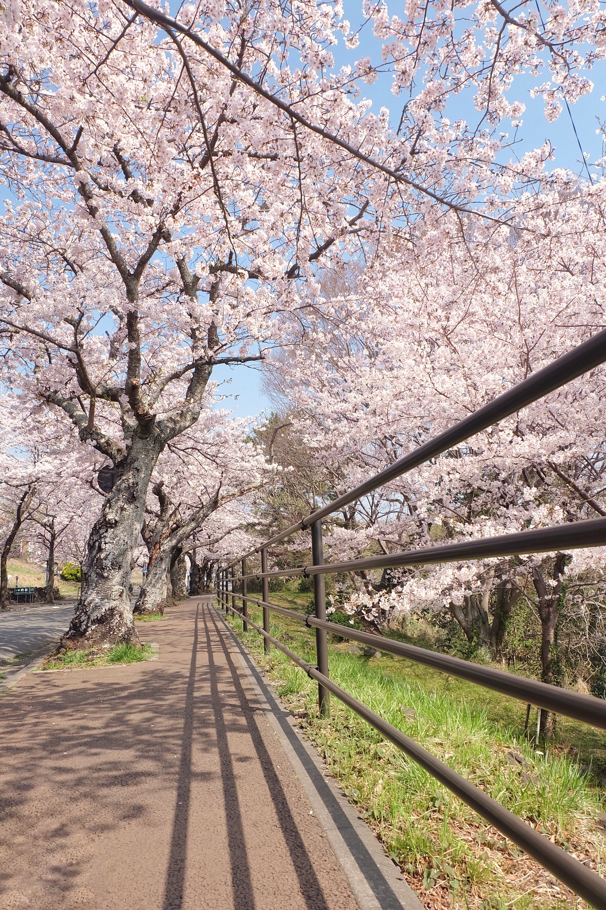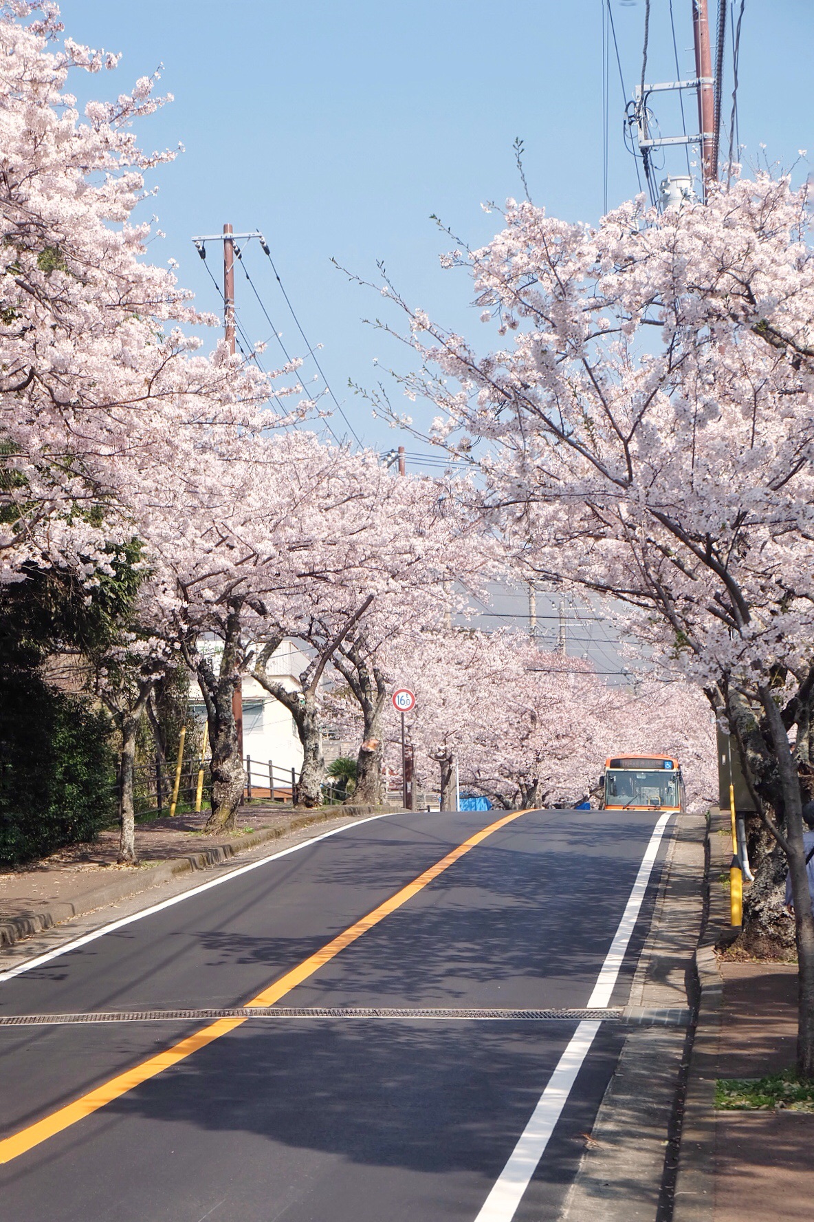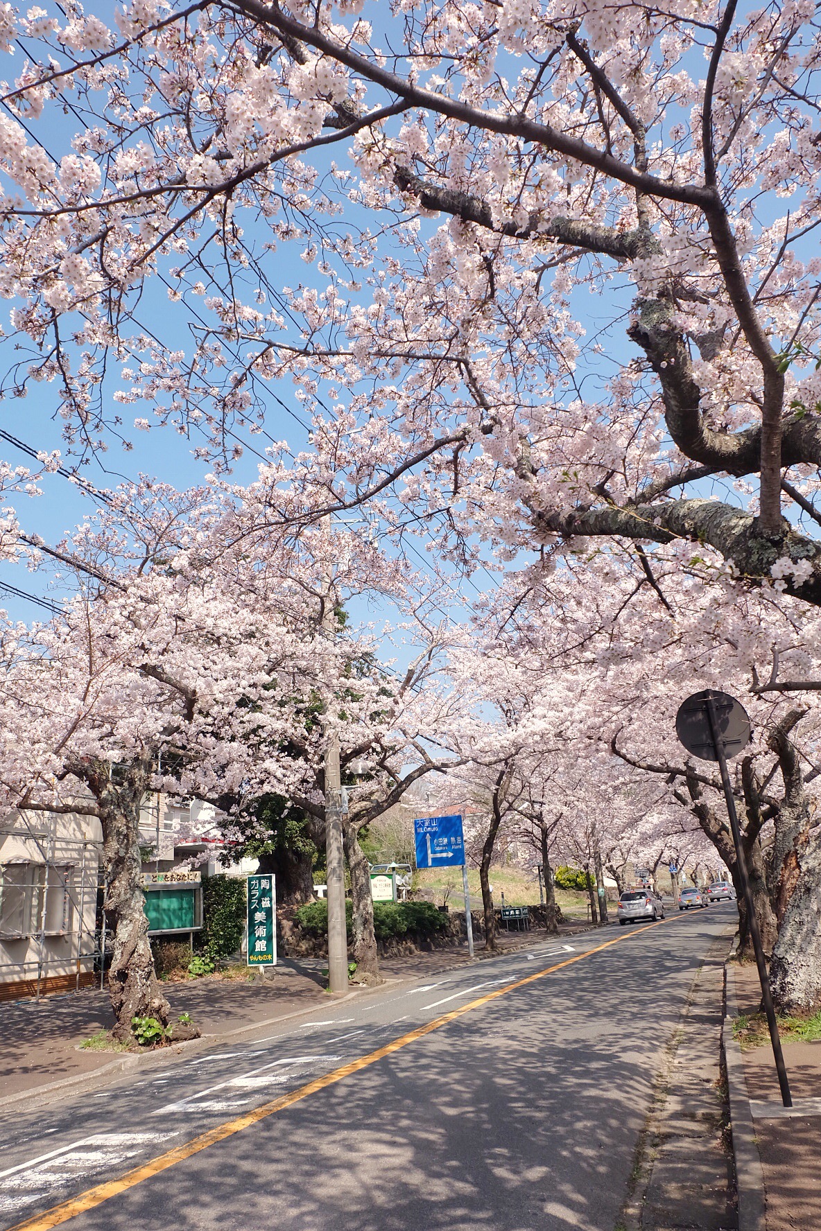 出伊豆高原站,按照路牌指示,步行几分钟便来到桜ノ並木,道路两旁满是盛开的樱花,一阵风吹过就能看到桜花最美的状态:桜吹雪