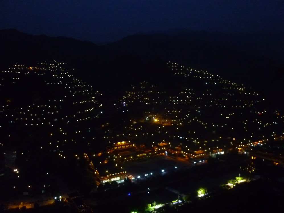 西江苗寨的夜景.很漂亮,家家户户都在房檐上挂得有灯