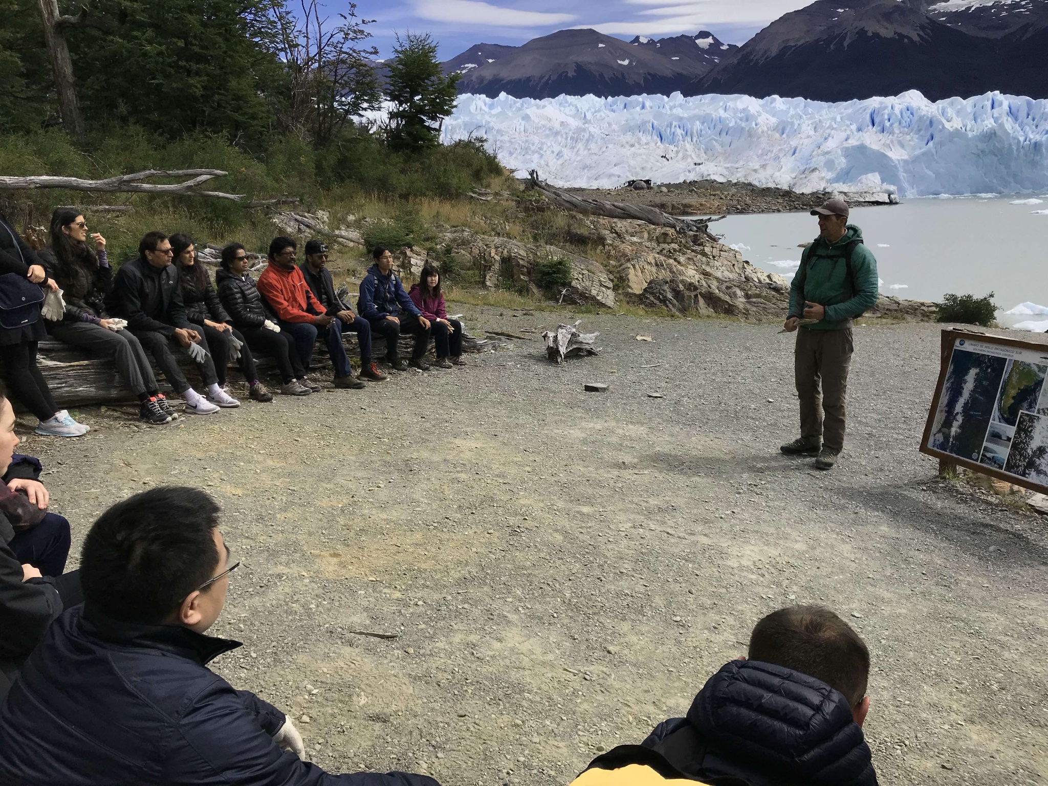 除了上厕所外,第一个停靠站是远远的看冰川。湖面上,远远的,密密麻麻的立在眼前,特别壮光。导游会让大家下车拍拍照,大概十分钟的样子,然后上车去游客中心。