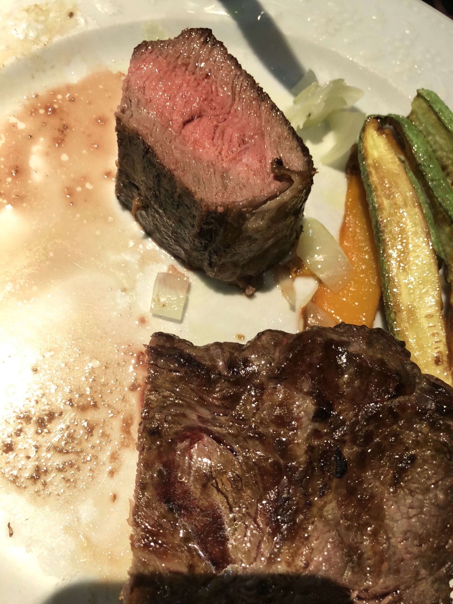 我们四个人,点了两个牛排一个鱼排,还有一个沙拉,服务员上菜的时候,我告诉他我需要一个干净的盘子,服务员点了点头,我知道我的语言不好,就找到翻译给他看,他又点了点头,最后我还指了指面前的盘子,他仿佛明白了,点着头就走了。姨说他一会不会给我们再端上一盘牛排吧,我说不会,说指看都用上了,应该不会错。结果服务员就真的给我们端上一盘牛排