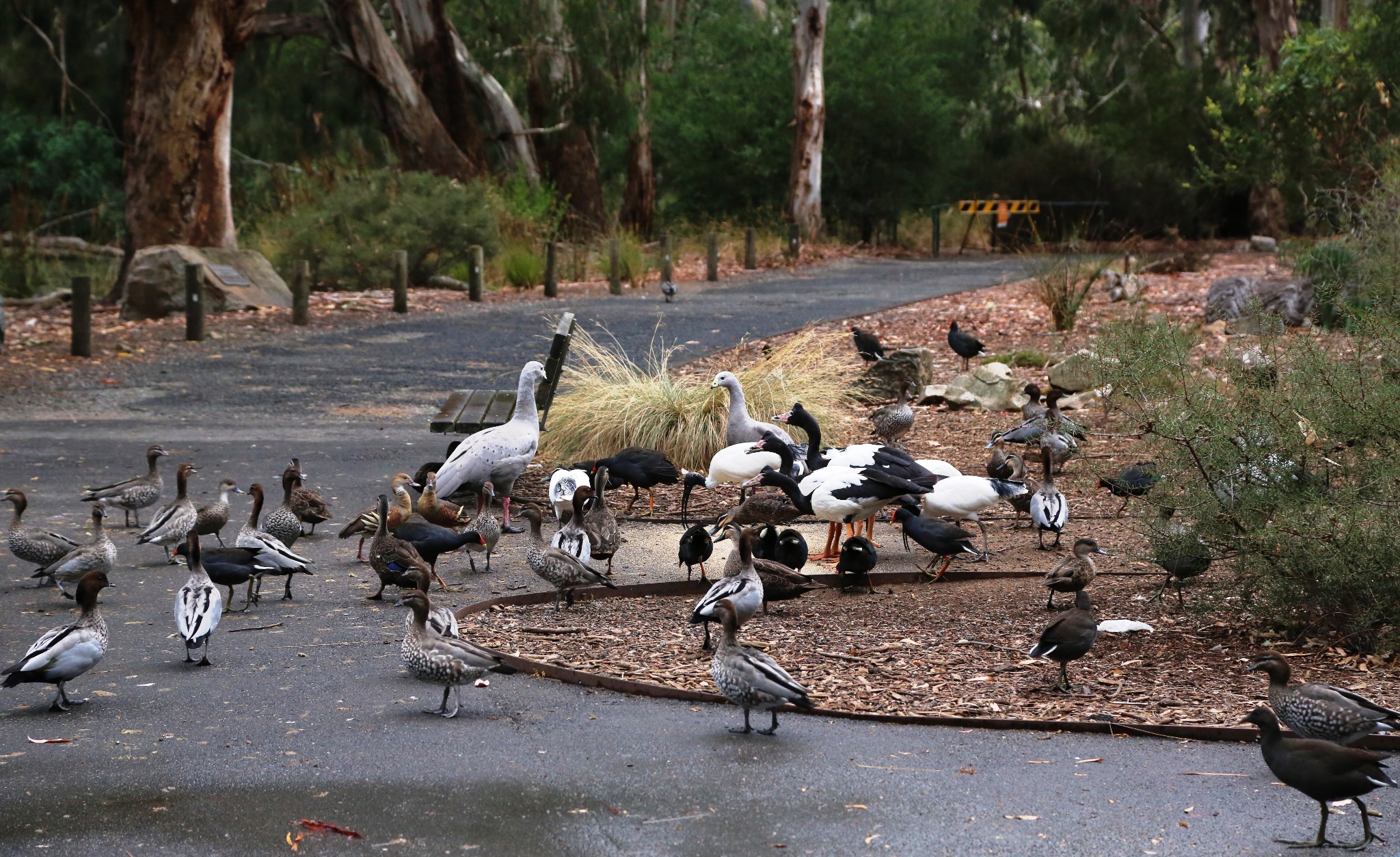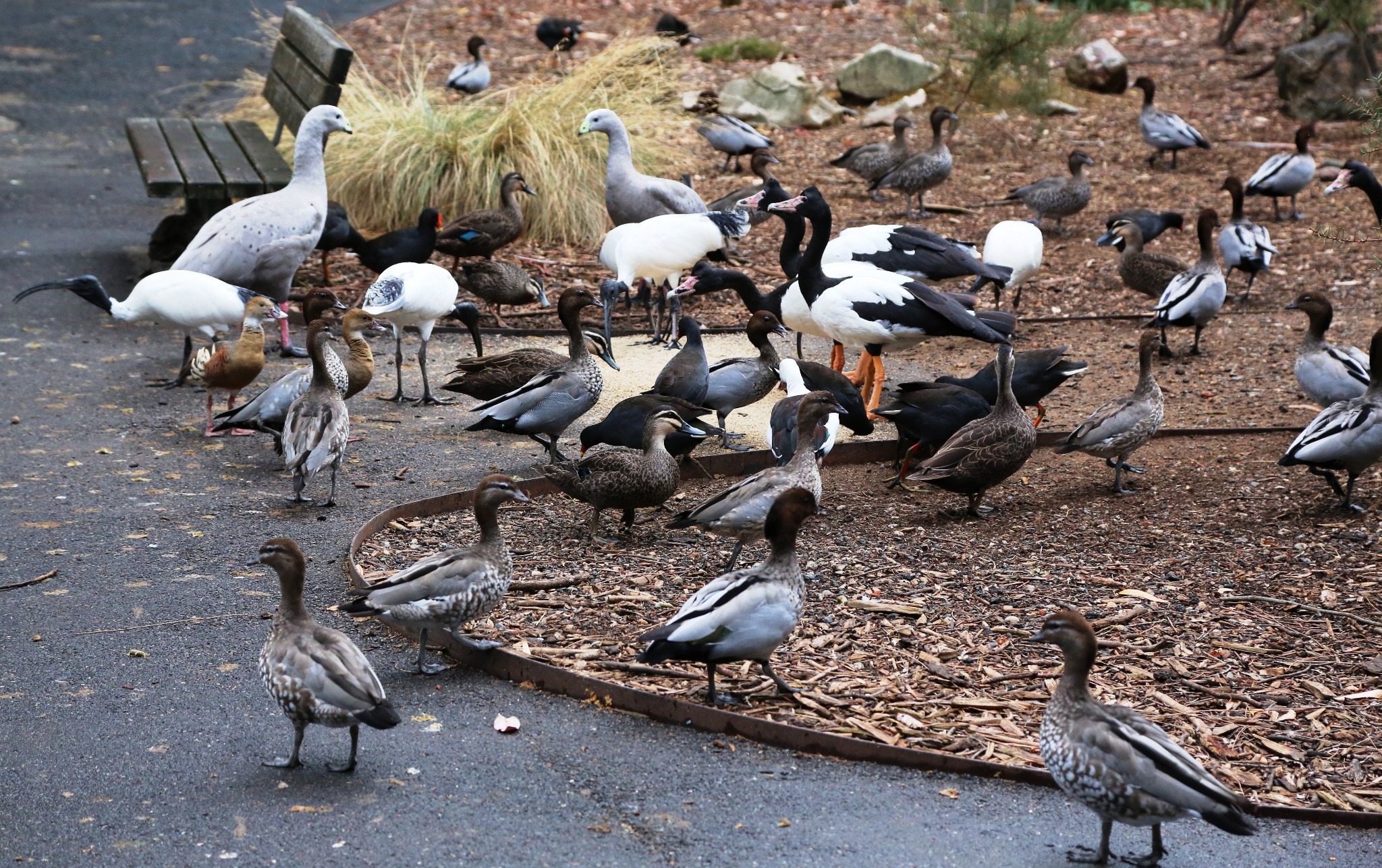 这里聚集了许多野鸭飞鸟,正在等候游客喂食。