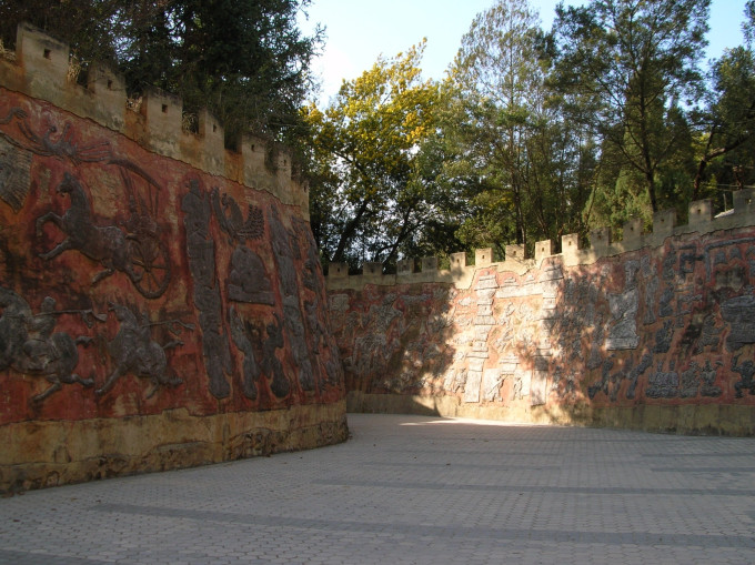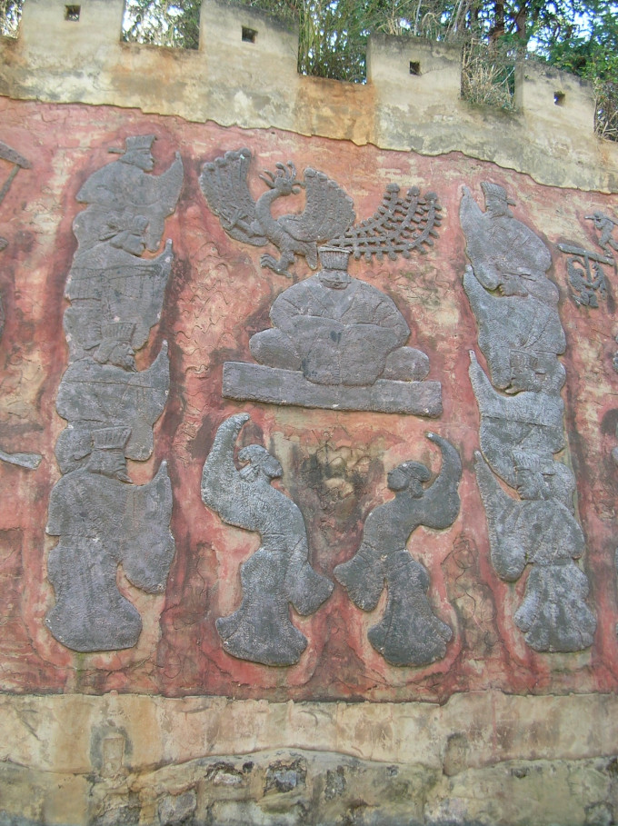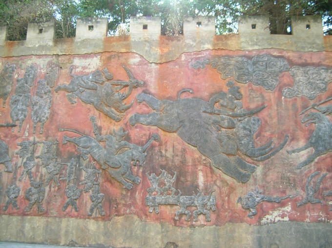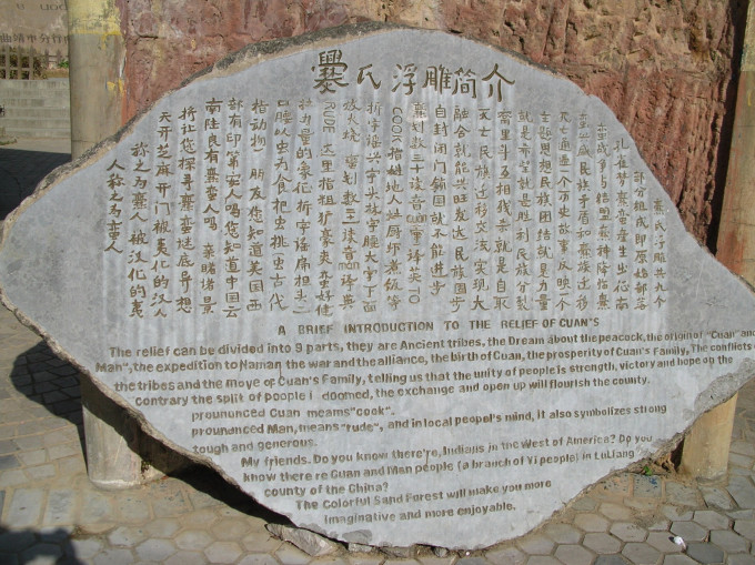 彩色沙林景区有玻璃钢制作的《爨史》浮雕,通过一个故事,以“原始部落”、“孔雀梦”、“爨的产生”、“出征南蛮”、“战争与结盟”、“爨神的诞生”、“爨的兴盛”、“民族矛盾”、“民族的迁移”九个部分的内容,反映了一个积极向上的主题思想:民族团结,交流融合,就是进步与希望。