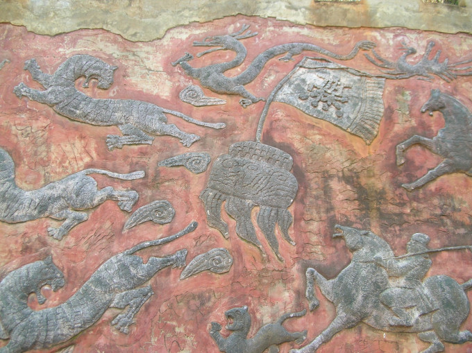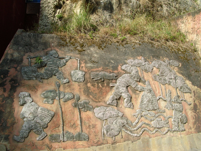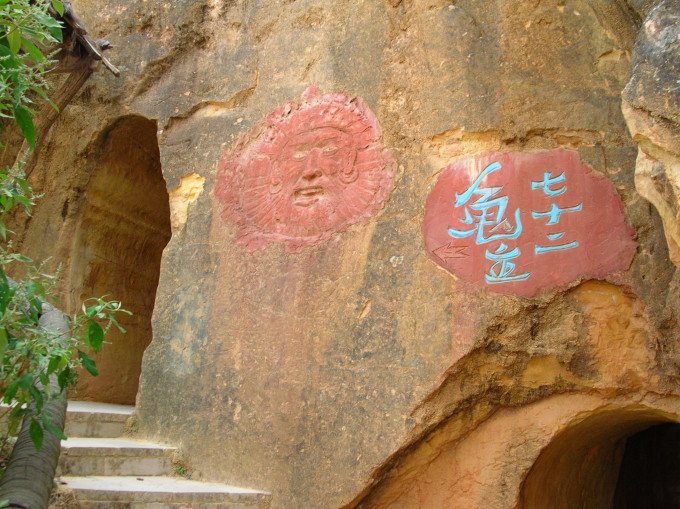孟获是“南蛮大王”,手下有72部落首领,号称“72鬼主”。这个大肚将军就是孟获的化身石。