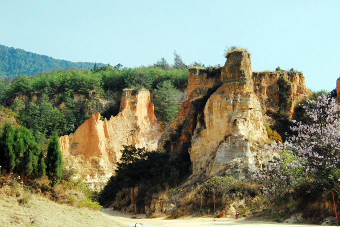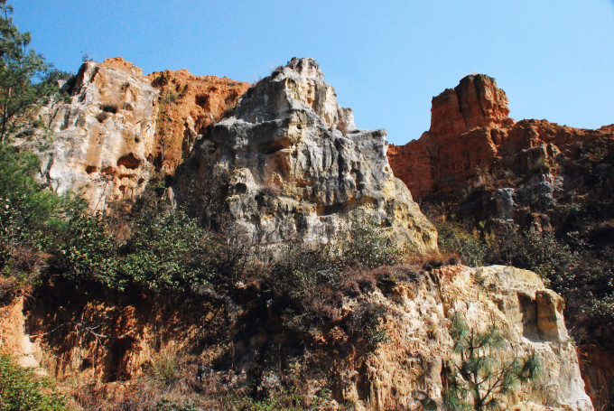陆良县城东南18公里处,有一片形成于3亿4千万年以前,属世界罕见的自然奇观~~~陆良彩色沙林。