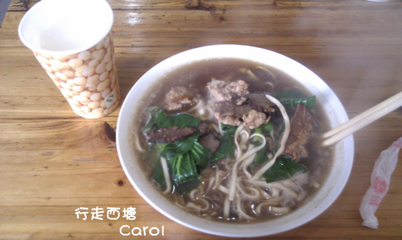 天下第一面馆的面和豆浆。这面,感觉有些小贵,二十五块,不过味道挺不错的,就在陆氏馄饨旁边。讲到陆氏馄饨,味道真 的不错,当时吃的时候忘记照相了,网上驴友力挺的一间摆摊店。