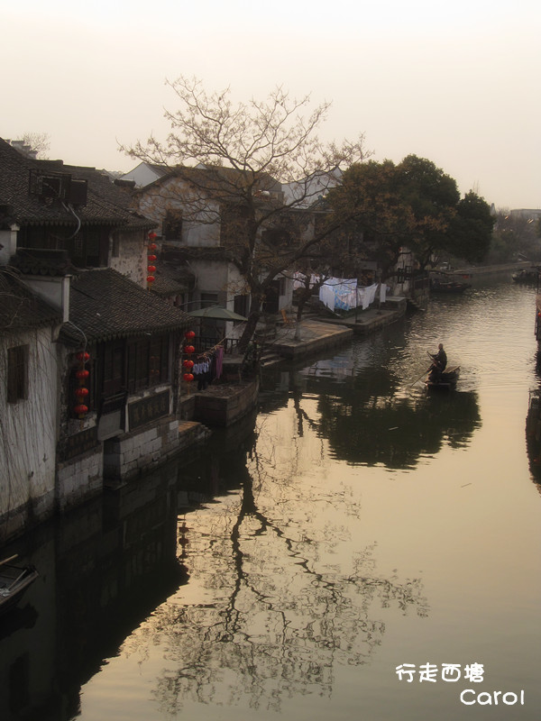 西塘 的早晨,格外的安静。特别喜欢那份没人打扰的心情。在那住的两天,早晨出门看日出,月亮似乎依然挂在空中,真的好早,早的自己都不会相信会在零度的温度,竟然有那样的动力去漫无目的的看日出、游走。哈哈,这只能说是千年古镇的魅力了。
