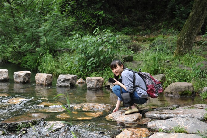 在拍摄九溪的时候,我还是用同样的原理,问题是要很好抓拍,毕竟我是旅游来的,没有人给我拗造型,在寂寞耐心中产生作品,这里要感谢不知名的几位穿橘红色的女性,是你们使我的照片更有生命力,这类照片往往视觉效果比较好容易让大家接受。