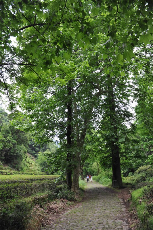溪水还在不断的流淌,而且相当有特色,就是贴近地面,微微流淌,年复一年,一如既往30年以前的感觉是如此,现在依然如旧。小路曲曲弯弯,绕有情趣,一路风景宜人,二边茶园林略,层层梯田般茶园色彩浓烈,像法国 农村油画中的景致,比比皆是。久居城市里的我,看罢当然心旷神怡,毫不吝啬地端起数码机“咔嚓、咔擦”按动快门。