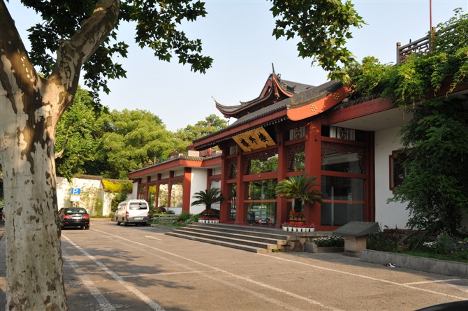 花费二十多元的士费,在不大的杭州 ,用餐酒店的地理位置算比较偏僻的虎跑路,有点花园式的感觉,都是应山而建的,有一定的坡度,茂密的树林很是优雅,还有点小资。不大酒店早已顾客满盈,安排我们到地下室,我们不愿意,情愿花点时间等待他人用餐毕,再享受哦。