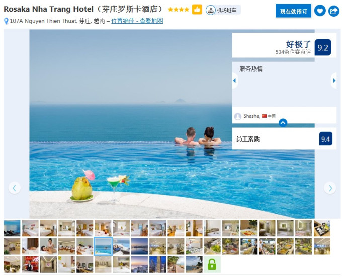芽庄两晚住罗斯卡,一开始是因为位置不错,去哪里都方便而且价格不贵,600+。后来想考虑换到海岸线上的酒店时,大部分酒店已经被预定的差不多了,其实到海滩也很近,300米左右。这家出入很方便,周边饮食店林立,楼顶有个无边泳池,早餐也很丰盛,接待我的前台很热情,服务也很好。booking上点评也是9分以上,我的经验是基本8.5分以上的酒店都不太会踩雷,9分以上的酒店都是很棒的。
