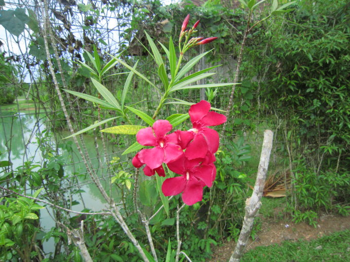 院子里的花朵,鲜艳。小时候,我们管这种花叫柳叶桃。
