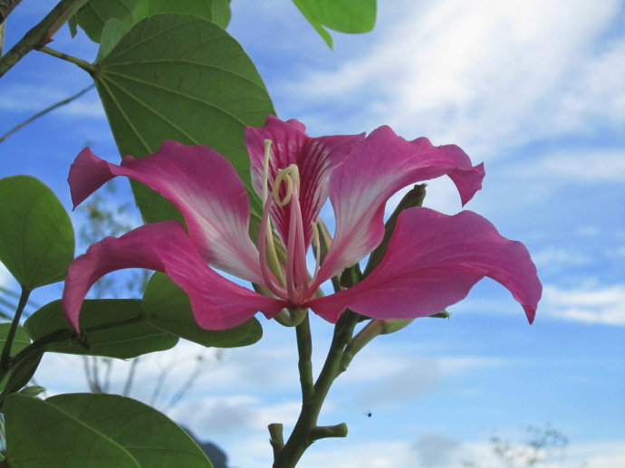 我爱它娇嫩的颜色,仰头向上的姿态,配合着蓝天和云的底色,让我目眩神迷