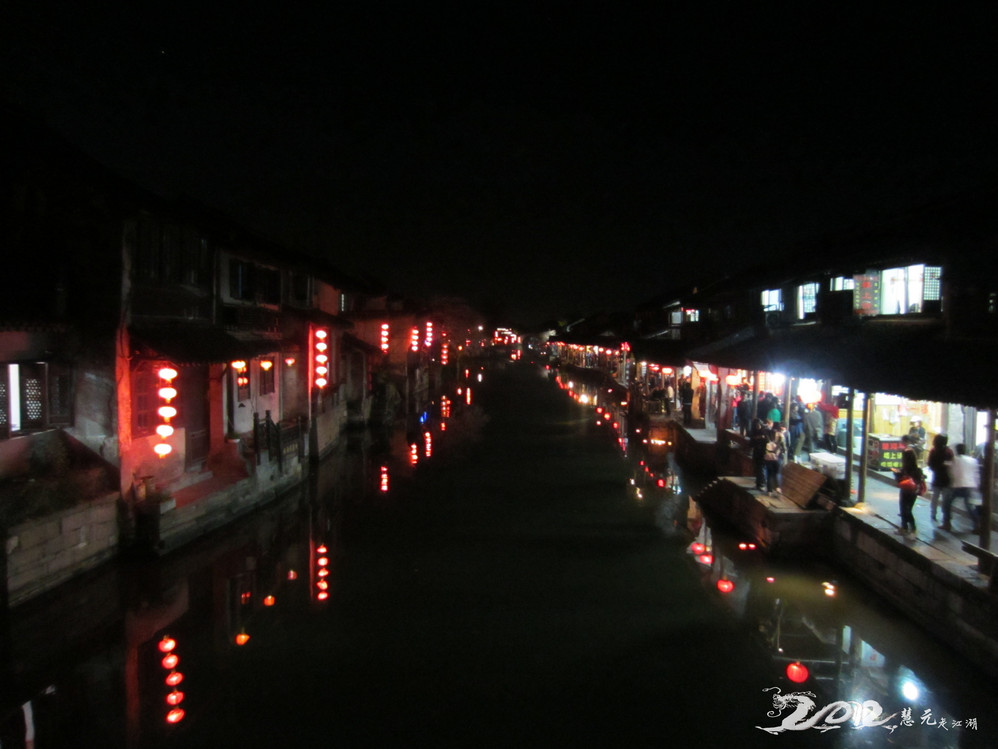 “西塘的一夜,为你等待了千年。”来西塘没看到西塘的夜景实为憾事!由于气候的原因,西塘每年五月至十月开放夜游活动,17:00至20:30开放三个景点及游船:张正根雕艺术馆(位于停车场,可下车后先游览)、中国钮扣博物馆(水上戏台 就位于钮扣馆沿河)、西园(可品茶,欣赏江南丝竹表演)。沿河长廊下有一排红灯笼,到了晚上彻夜通明,对百姓来说它们是路灯,对游客来说却是一道亮丽的风景线。水上戏台在夜游开放期间有越剧《五女拜寿》、田歌《五姑娘》等表演,老百姓围坐在对岸看戏,游客们在船上看戏,台上台下 都是风景。夜游西塘一定不要忘记乘游船,坐在小船上悠哉悠哉,学唱西塘的小调,在华灯初上的水乡,让人仿佛身在江南如诗如画 的梦中。