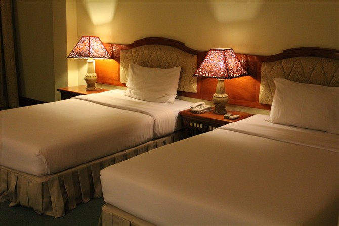来到下榻的酒店,对外宣传三星 ,大概相当于国内二星的样子。团友们都在等待着分房间,只有我和老婆开始四处留影。