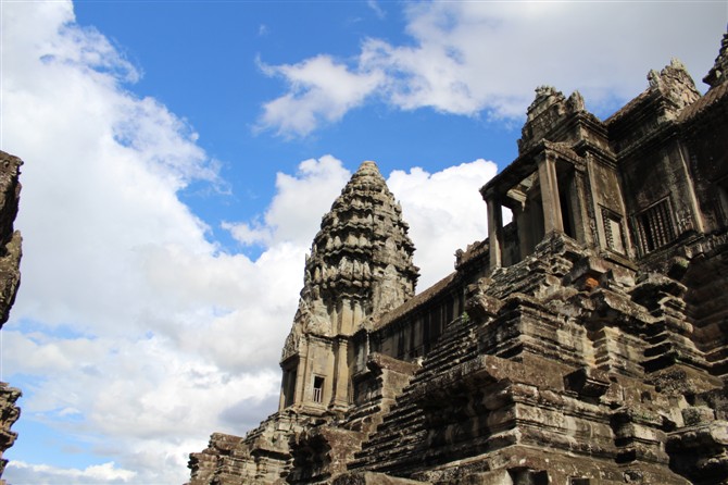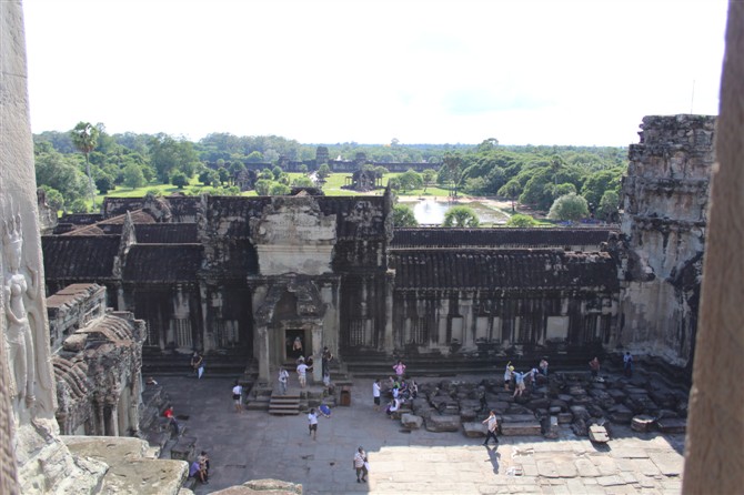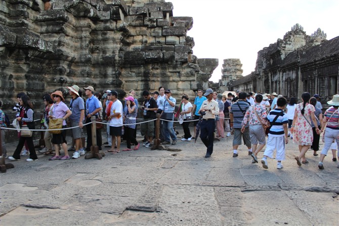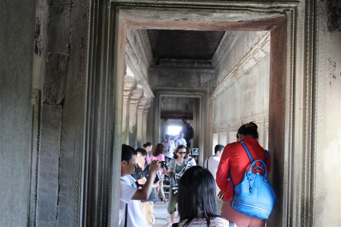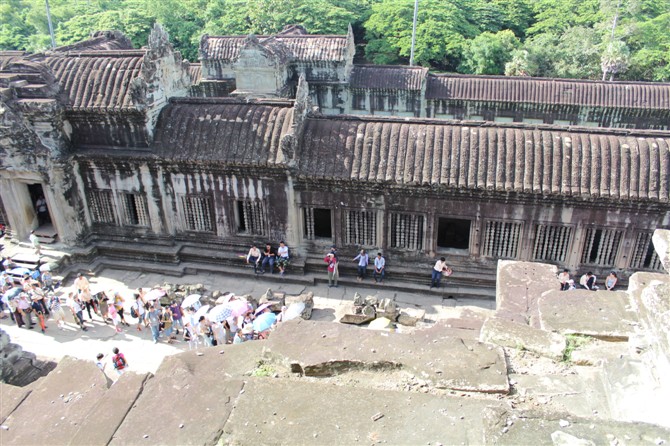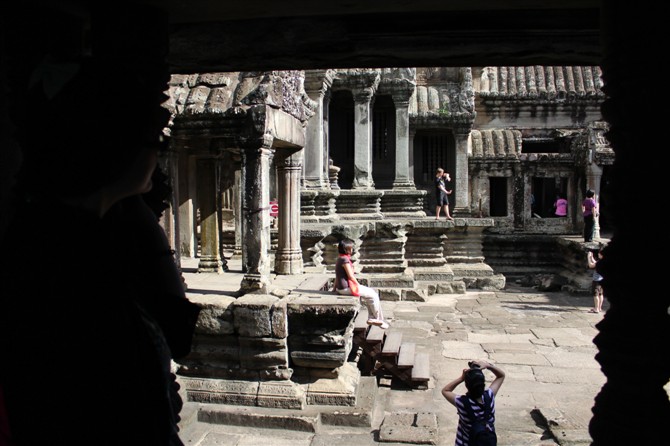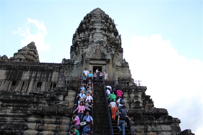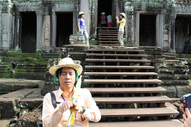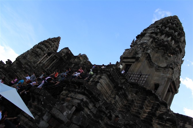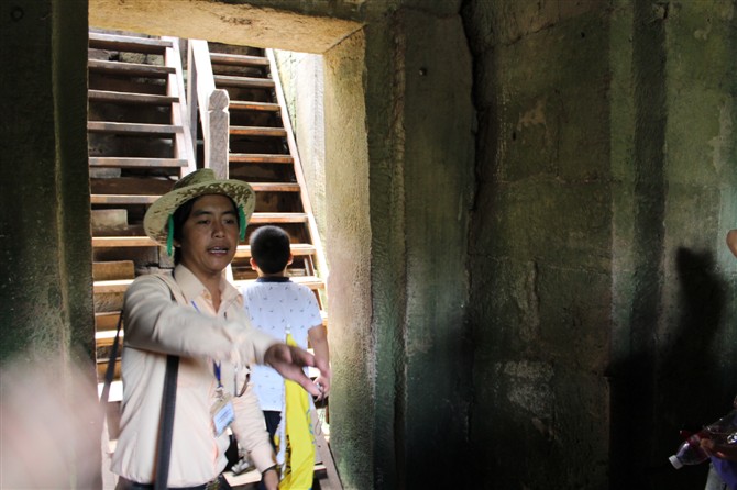 前面的拍照耽误了一些时间,于是一路远远的紧紧追随导游,直接就来到了小吴哥的第三层建筑。