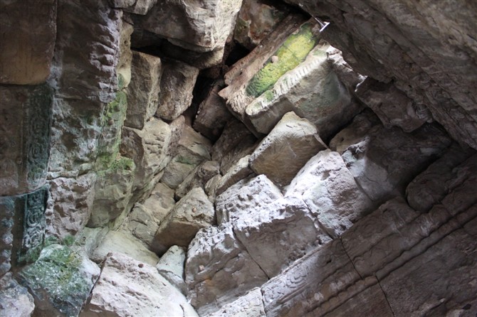 这些发黑的地方初以为是火烧过的痕迹,问过导游才知道,是雨天的苔藓日久发黑造成的。