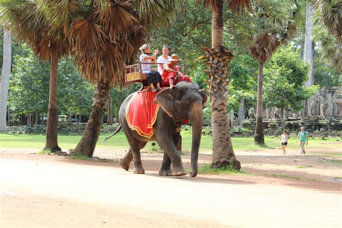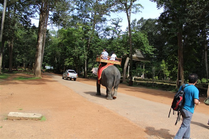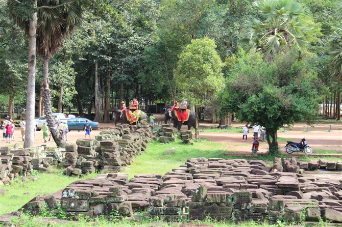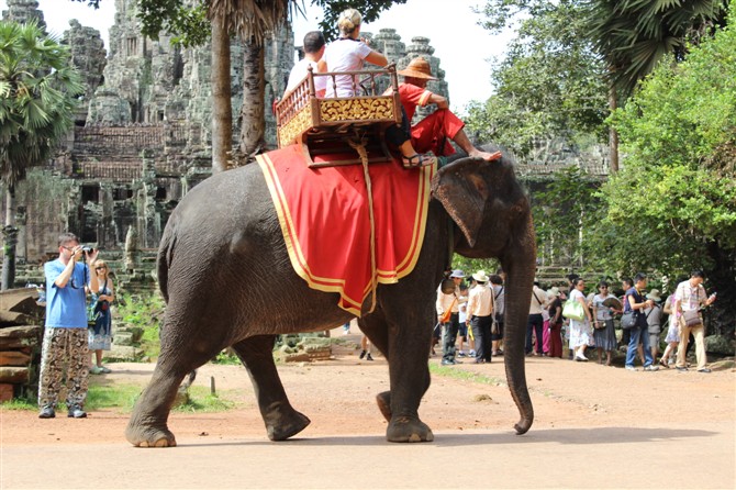 大象不但为游人提供了方便,也更加环保,而且能与吴哥窟 的风格融为一体。